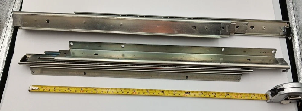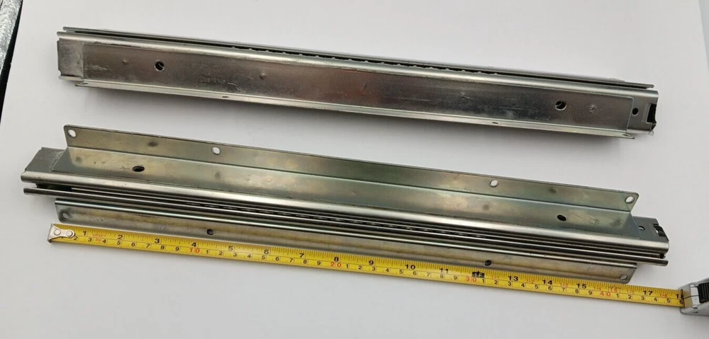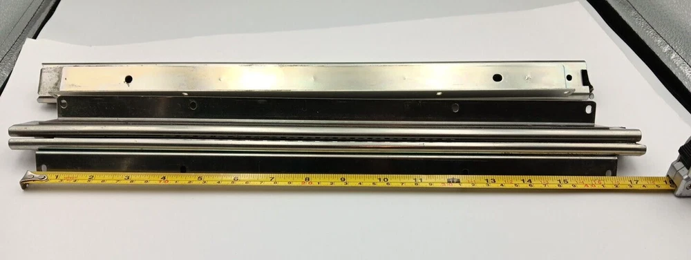 This were removed from vertical sliding machines. They are heavy duty but hardware was not saved. This set of Accuride heavy-duty drawer slides is perfect for anyone in need of a reliable and durable solution for their cabinets. With a length of 18 inches and a height of 1.25 inches, these full-extension slides are made of stainless steel and come in a pack of two.The slides feature a soft-close design and are sold without any hardware, making them a versatile addition to any home improvement project. Their traditional style and silver color make them a great fit for any cabinet decor. Made in China, these slides are sure to provide a sturdy and long-lasting solution for your cabinet needs.