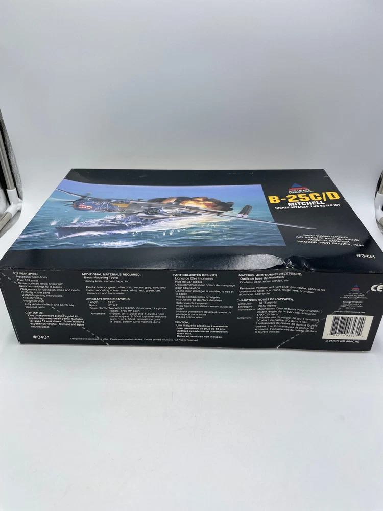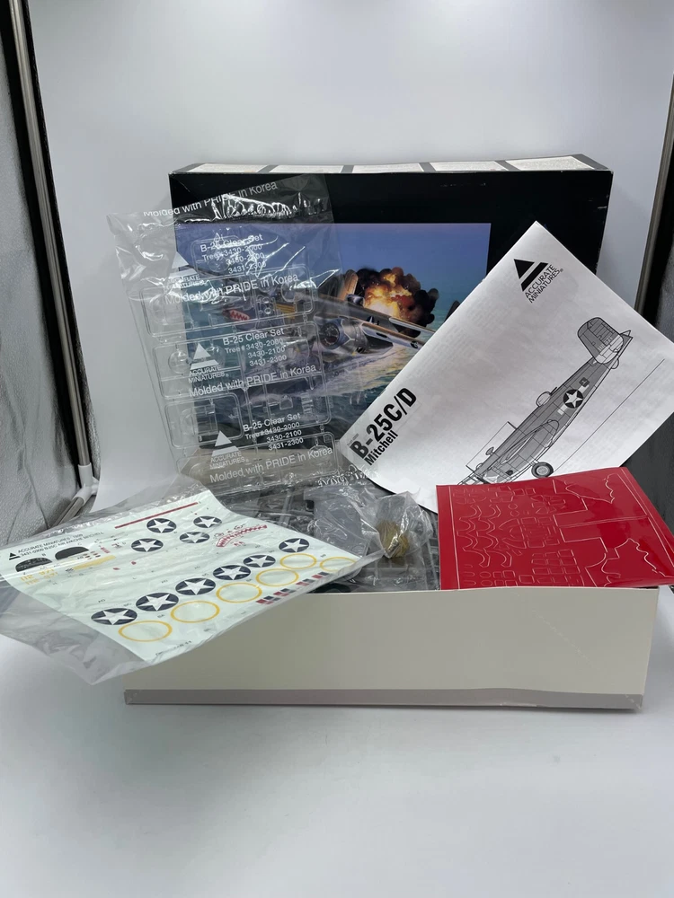 Accurate Miniatures 1/48 B-25C/D Mitchell Model Kit 3431 1999 Open Box. Open Box Sealed Components Box Has Dent As Shown. Please see photos. Shipping guaranteed by next business day. We use recycled packing materials when possible. We take our reputation seriously so if you are pleased with your experience please give us a positive rating. If you are unsatisfied please contact us before leaving feedback. Please view our other listings. Thank you for shopping with us!