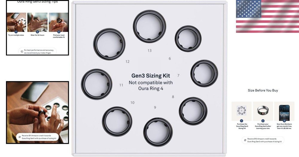 Accurate Ring Gen3 Sizing Kit with Instructions & $10 Credit for Future Purchase ‹ › ‹ › ‹ › ‹ › ‹ › ‹ › Accurate Ring Gen3 Sizing Kit Discover the perfect AURA Ring fit with our exclusive Sizing Kit, a must-have for anyone considering the AURA Ring Gen3. This custom sizer enables you and those around you to find your ideal size with precision and ease. Key Features: Custom Sizer: Designed specifically for the AURA Ring, ensuring an accurate fit. $10 Credit: Enjoy a $10 credit towards a future purchase of your AURA Ring with the Sizing Kit purchase. Size Range: Available in sizes 6-13; please note there are no half sizes. Perfect Fit: Wear the ring sizer for at least 24 hours to ensure optimum comfort and accuracy. Versatile Wear: The AURA Ring can be worn on any finger and either hand; we recommend sizing the finger you plan to wear it on for best results. Benefits: Ensures you find your perfect fit before making a purchase. Proper sizing leads to enhanced data accuracy and overall comfort. Confidence in your purchase, knowing you’ll have the right size for your unique finger. Why Choose Our Accurate Ring Gen3 Sizing Kit? The journey to health monitoring begins with the right fit. The AURA Ring Gen3 Sizing Kit is more than just a tool; it’s your gateway to a personalized experience. With our sizing kit, you’ll not only receive an invaluable resource for finding your size, but also a $10 credit towards your AURA Ring purchase, transforming this necessary step into a rewarding experience. Invest in precision, comfort, and accuracy for your AURA Ring today! Make the smartest choice for your wrist with the Accurate Ring Gen3 Sizing Kit and enjoy a better future purchase experience. Shipping Free & Fast Shipping - We offer free shipping to most of the USA with a normal delivery time of 3-7 days. However, due to the current situation, additional delivery time (up to 3 weeks) may be required for some items. Alternative Carriers - We may use alternative carriers (e.g. USPS, FedEx, UPS, etc.) to ensure your package arrives safely and on time. Due to the use of multiple carriers, we are unable to provide a tracking number automatically. Handling Time - Orders are processed and shipped within 1-2 business days of receiving cleared payment. Shipping Restrictions - Shipping to Alaska, Hawaii, Puerto Rico, Guam, and other US territories may incur shipping charges or delivery restrictions. Please contact us before ordering, or your order can be refunded/cancelled. State Restrictions - There may be restrictions based on your state of purchase. For example, certain items may not be shipped to California due to state regulations. Contact for Tracking Updates - If you require tracking updates or have any concerns about the delivery of your order, please feel free to contact us, and we will be happy to assist you. Return 30-Day Hassle-Free Returns - We want you to be completely satisfied with your purchase. If you are not, you can return the item within 30 days of receiving it for a full refund or exchange. Easy Return Process - To start a return, simply contact us and we will provide you with a prepaid return shipping label and detailed instructions. Restocking Fee - There are no restocking fees for returns. However, the buyer is responsible for return shipping costs if the return is not due to a seller's error. Refund Processing Time - Refunds will be processed within 5 business days of receiving the returned item in its original condition. Payment We accept all major credit cards, PayPal, and Apple Pay for your convenience. Your payment information is secure and encrypted to ensure a safe and seamless transaction. Please complete your payment within 3 days of purchase to avoid any delays in shipping. Feedback Your feedback is extremely important to us. We strive to provide the best products and customer service possible. If you are satisfied with your purchase, please take a moment to leave us a positive review. If you have any concerns or issues with your order, please contact us before leaving negative feedback. We are committed to resolving any problems and ensuring your satisfaction. Contact Us If you have any questions or concerns, please feel free to reach out to our customer support team. You can contact us through the eBay messaging system. We are available Monday to Friday, 9:00 am to 5:00 pm EST, and we will do our best to respond to your inquiry within 24 hours. Buy it now and enjoy a pleasant shopping experience! UPC: Not Set Display Size: 6.34 x 5.67 x 1.46 Item Weight: 4.2 ounces Item Width: Oura Ring Sizing Kit Size: Oura Ring Sizing Kit Item Height: Not Set Number of Items in Set: 1 Item Length: Not Set Unit Quantity: 1 Features: Wireless,Comfort,Accuracy,Custom Sizing,Wearable Technology,No Returns,Sizing Guidance,Compatible with All Fingers,Sizing Instructions Language: English Material: Plastic Sport/Activity: Running & Jogging Sensors: Not Set Measurement Provided: Not Set Body Area: Finger For Operating Systems: Not Set Set Includes: Oura Ring Sizing Kit Brand: Unbranded Model: Not Set Department: Unisex Adults Type: Sizing Kit Battery Life: Not Set Manufacturer Warranty: Not Set Power Source: Not Set Display Resolution: Not Set MPN: Not Set Measurement System: Not Set Color: White Country/Region of Manufacture: Not Set Indoor/Outdoor: Indoor Unit Type: oz