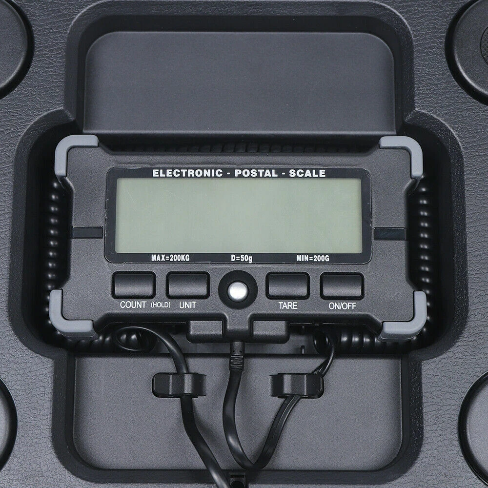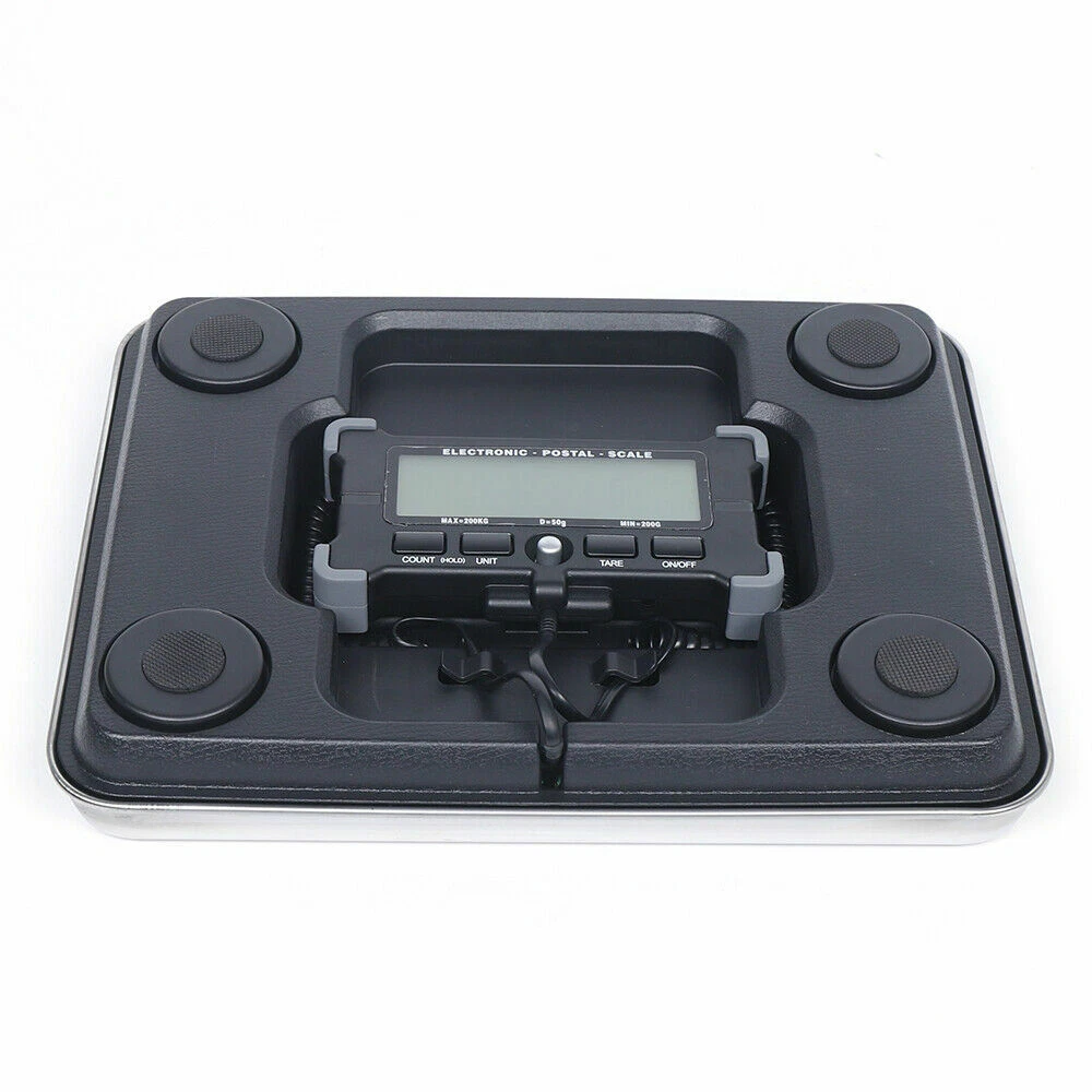 Specifications Product Size: 31.6X25X4.95cm(12.44*9.84*1.95inch) 2. Display Size: 153.4X83.4X25Mm 6. Power Supply: 3X "Aaa" & 5V Usb Power Supply 7. Maximum Weighing: 200Kg, Minimum Lifting Scale: 200G, Division Value: 50G Net Weight: 1kg Product Features: 1. Non-Slip Sticker Design (The Black Part Is a Non-Slip Sticker, Which Can Be Torn Off) 2. Stainless Steel Scale Surface 3. All-In-One Can Store The Display 4. Anti-Drop Display Design 5. Unit Switching: g/Kg/Lb/oz 6. Lcd Display: Htn High-Definition Display Super Large Screen 4. Lcd Display Size (101.5X31.9Mm) 7. Green Backlight Packing List: Mail Parcel Scale +Usb Data Cable+Hook*2+3X "Aaa" Battery Accurate Shipping Scale 200kg LCD Digital Postal Scale Portable Stainless Steel Specifications Product Size: 31.6X25X4.95cm(12.44*9.84*1.95inch) 2. Display Size: 153.4X83.4X25Mm 6. Power Supply: 3X "Aaa" & 5V Usb Power Supply 7. Maximum Weighing: 200Kg, Minimum Lifting Scale: 200G, Division Value: 50G Net Weight: 1kg Product Features: 1. Non-Slip Sticker Design (The Black Part Is a Non-Slip Sticker, Which Can Be Torn Off) 2. Stainless Steel Scale Surface 3. All-In-One Can Store The Display 4. Anti-Drop Display Design 5. Unit Switching: g/Kg/Lb/oz 6. Lcd Display: Htn High-Definition Display Super Large Screen 4. Lcd Display Size (101.5X31.9Mm) 7. Green Backlight Instructions When using for the first time, press the lock switch in Figure 5 to remove the display. Open the battery cover of the monitor (as shown in Figure 11), Put in AAA battery according to the battery identification, or connect the mobile phone charger with the plug cable (usb-dc) (as shown in Figure 4), or PC USB interface to provide power for the electronic scale. 3.1 Place the platform on the flat ground, press ON/OFF (Fig. 2) to start the machine, and return tozero after 88888 is displayed. At this time, the items to be weighed can be loaded and placed on theplatform (Fig. 1). 3.2 "Tare" key if you need to use the container to weigh the goods, add the container after turning on the machine to zero, and press TARE (Fig. 3) key to clear to zero, then you can load the goods in the container for measurement. 3.3 "Unit" key (Fig. 6) can select different units of measurement (kg, G, LB, oz) 3.4 "PCs" (Figure 7) (counting function): if you need to count a lot of the same items, you can use this function. This function provides 25-50-75-100 four different sampling numbers. When the machine is turned to zero, you can count one of the four sampling values (such as 25 items) and put it on the scale to display the weight of 25 items (such as 1000g). At this time, press the PCS key for 3 seconds, P 25 will be displayed. (if you want to select the other three sampling values, press the UNIT key to display P 50, p75, P100,) at this time,press the PCS key again, the display will display PCS 25, and the same items can be loaded to start countingThe division value of this product is 50g, and the counting object should not be less than 50g, otherwise it may be inaccurate.) 3.5 Weighing Locking Function: In weighing state, press PCS + UNIT key for 3 seconds at the same time, the weighed weight will be locked, and press it again to release the lock.The kg unit will flash in the unlocked state, but not in the locked state. 3.6. The hanging hole in Figure 10 can hang the monitor on the wall (with product accessories) for easy reading. IV. Power-off time setting Press the "TARE" key for 3 seconds in the power on state to display Au 90 (representing 90seconds). Press UNIT key to change the time, The ongest time is 540 seconds. 0 means no power off. Press"TARE" key again to display the PSS and then the version number. The setting is completed. V. Attentions 5.1 Please place the product in a stable and vibration free place. 5.2 Do not place heavy objects on the platform for a long time, or objects larger than the capacity of the product. If the weight exceeds capacity weight, FULL will be displayed 5.3 When the power is low(LO), replace the battery in time, or switch to USB-DC power supply. 5.4 Use the product in the environment of 10-30C. 5.5 Do not use corrosive cleaning solution to wipe the surface of the product. The main material of the shell is ABS and the platform is made of stainless steel. Please do not disassemble, keep it carefully! 5.6 This product is a patented. Please do not counterfeit. Packing List: Mail Parcel Scale +Usb Data Cable+Hook*2+3X "Aaa" Battery Payment Delivery details Terms of sales About us Contact us Payment We accept ebay payment 。 Fees such as import duties, taxes are not included in the item price or shipping costs. These charges are the buyer's responsibility. Delivery details Shipping: 2-9 working days to: USA Terms of sales We maintain high standards of excellence and strive for hundred percent customer satisfaction. Feedback is very important to us. We hope that you contact us immediately before you give neutral or negative feedback, so that we can address your concerns. It is impossible to address issues if we do not know about them! About us Your satis faction is our ultimate goal. We work hard to earn your trust and future business. Our certified technicians have tested each item before shipping. The unit comes with 1 year limited warranty on all manufacturing defects. a) If you receive a defective item, you may return it or ask for a discount. Please contact us within 14 days after you receive the package. b) What you returned must be intact and in its original packaging as re? u. Customer is responsible for shipping costs of the returned item. c) We will cover the cost of shipping back t with the shipping rate indicated in the registration page. We will send you a new unit or refund the full payment you paid. Thank you. Contact us Business Hour Business Hour: Monday To Friday: 8:30 AM to 5:00 PM (Beijing China time) Due to time zones, our reply to your questions may not be immediately. But within above working time, we will reply your email within 24 ho
