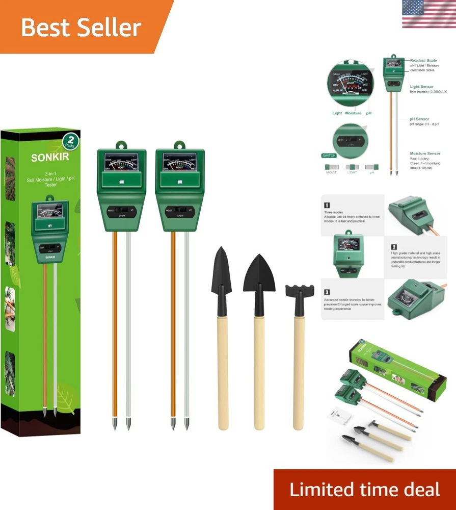 Accurate Soil pH Meter with Double-Needle Technology - Essential Gardening Tool ‹ › ‹ › ‹ › ‹ › ‹ › ‹ › ‹ › ‹ › ‹ › ‹ › Accurate Soil pH Meter with Double-Needle Technology Essential Gardening Tool 3-IN-1 FUNCTION: Test soil moisture, pH value, and sunlight level of plants effortlessly with our innovative soil meter. Specially designed to help you determine the perfect moments to nourish and care for your vibrant greenery. ACCURATE & RELIABLE: Double-needle Detection Technology enhances the speed and precision of measuring soil moisture and pH acidity. EASY TO USE: No batteries needed – simply insert the sensor probe into the soil and toggle the switch to measure moisture, pH, or sunlight. INDOOR & OUTDOOR USE: Lightweight and portable design makes it effortless to carry for outdoor exploration. Ideal for home plants, gardens, lawns, and farms. COST-EFFECTIVE COMBO: This package includes two 3-in-1 Soil Meters along with a complete set of Garden Tools, providing exceptional value for the discerning gardener. Why Choose Our Soil pH Meter? Transform into an expert plant carer with the MS02 Soil pH/Moisture Tester. Its revolutionary 3-in-1 design lets you effortlessly monitor soil conditions, ensuring your plants thrive with the right moisture, pH balance, and sunlight. Enjoy the scientific data monitoring that keeps your plants in optimal health. Kindly Note: The pH function is not suitable for testing the acidity of liquids. The pH value may remain steady between 7 and 8 during tests, as soil is often close to neutral. This is a normal occurrence and should not be mistaken for a defect. Discover the secret to thriving plants with our Accurate Soil pH Meter – order yours today and elevate your gardening game to new heights! Shipping Free & Fast Shipping - We offer free shipping to most of the USA with a normal delivery time of 3-7 days. However, due to the current situation, additional delivery time (up to 3 weeks) may be required for some items. Alternative Carriers - We may use alternative carriers (e.g. USPS, FedEx, UPS, etc.) to ensure your package arrives safely and on time. Due to the use of multiple carriers, we are unable to provide a tracking number automatically. Handling Time - Orders are processed and shipped within 1-2 business days of receiving cleared payment. Shipping Restrictions - Shipping to Alaska, Hawaii, Puerto Rico, Guam, and other US territories may incur shipping charges or delivery restrictions. Please contact us before ordering, or your order can be refunded/cancelled. State Restrictions - There may be restrictions based on your state of purchase. For example, certain items may not be shipped to California due to state regulations. Contact for Tracking Updates - If you require tracking updates or have any concerns about the delivery of your order, please feel free to contact us, and we will be happy to assist you. Return 30-Day Hassle-Free Returns - We want you to be completely satisfied with your purchase. If you are not, you can return the item within 30 days of receiving it for a full refund or exchange. Easy Return Process - To start a return, simply contact us and we will provide you with a prepaid return shipping label and detailed instructions. Restocking Fee - There are no restocking fees for returns. However, the buyer is responsible for return shipping costs if the return is not due to a seller's error. Refund Processing Time - Refunds will be processed within 5 business days of receiving the returned item in its original condition. Payment We accept all major credit cards, PayPal, and Apple Pay for your convenience. Your payment information is secure and encrypted to ensure a safe and seamless transaction. Please complete your payment within 3 days of purchase to avoid any delays in shipping. Feedback Your feedback is extremely important to us. We strive to provide the best products and customer service possible. If you are satisfied with your purchase, please take a moment to leave us a positive review. If you have any concerns or issues with your order, please contact us before leaving negative feedback. We are committed to resolving any problems and ensuring your satisfaction. Contact Us If you have any questions or concerns, please feel free to reach out to our customer support team. You can contact us through the eBay messaging system. We are available Monday to Friday, 9:00 am to 5:00 pm EST, and we will do our best to respond to your inquiry within 24 hours. Thank you for supporting our small family business! UPC: Not Set Unit Quantity: 2 Packs Features: Portable,3-in-1 Function,Easy to Use,Indoor & Outdoor Use,Lightweight,Accurate Measurement,Cost-effective Combo Displayed Measurements: Soil Moisture,pH Value,Sunlight Level Material: Plastic Power Source: None Brand: Unbranded Type: Soil pH Meter Measuring Technology: Electric Item Length: Not Set Model: Not Set System of Measurement: Standard (SAE) Item Height: Not Set Item Diameter: n/a Item Width: Not Set Color: Green Size: n/a Country/Region of Manufacture: Not Set Item Weight: 6.4 oz MPN: Not Set Manufacturer Warranty: Not Set Unit Type: oz