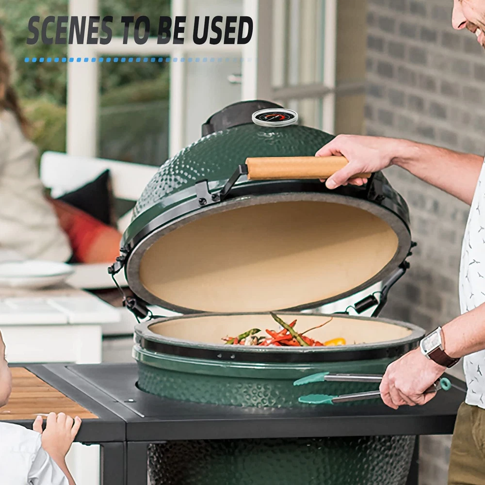 ★Product Specifications: Material: Stainless steel Dual display: 150℉-900℉ Accuracy: +/-1.5℃ Dial diameter: 83mm/3.28 in Stem diameter: 8.12mm/0.32 in Stem length: 85mm/3.25 in Product weight: 54g/1.9 oz ★Features: ✓Accurate & Easy Reads. ✓Waterproof & Anti-Foggy Glass Lens. ✓Easy Install-Screw Thread and Wing Nut For Easy Mounting. ✓Already Check Calibration. ★Package Include: 1* Thermometer 【Fits All Big Green Egg Model Grills】This temperature gauge fits and can be easily installed on all sizes of Big Green Egg grills, including Mini, Minimax, Small, Medium, Large, XL and 2XL, etc. 【3.3''Oversized Dial】The improved 3.3”diameter large gauge dial and extended 3-1/4” long temperature probe will help you clearly and accurately read the heating temperature of the grill. 【150-900℉ Thermomete Range】 The gauge markings for the thermometer get started at 150 ℉ and goes up to 900 ℉ Fahrenheit. Wider measurement range for a better BBQ grilling. 【Waterproof and Antifogging】This Big Green Egg thermometer will still work fine even accompany your big green egg outside for a whole rainy day. 【Long Service Life】With its durable construction and waterproof design, this stainless steel Big Green Egg thermostat will work well for a long time even in heavy use.