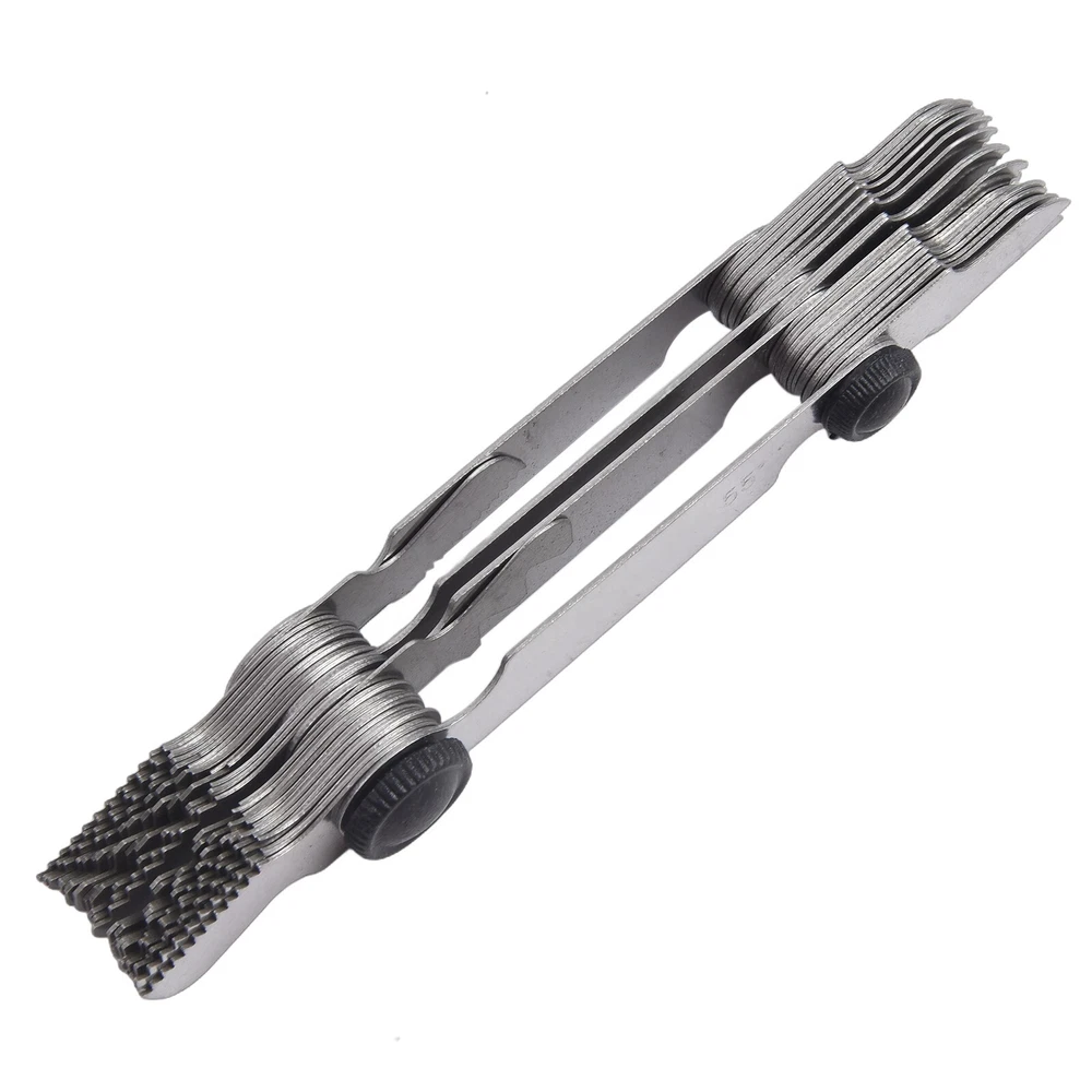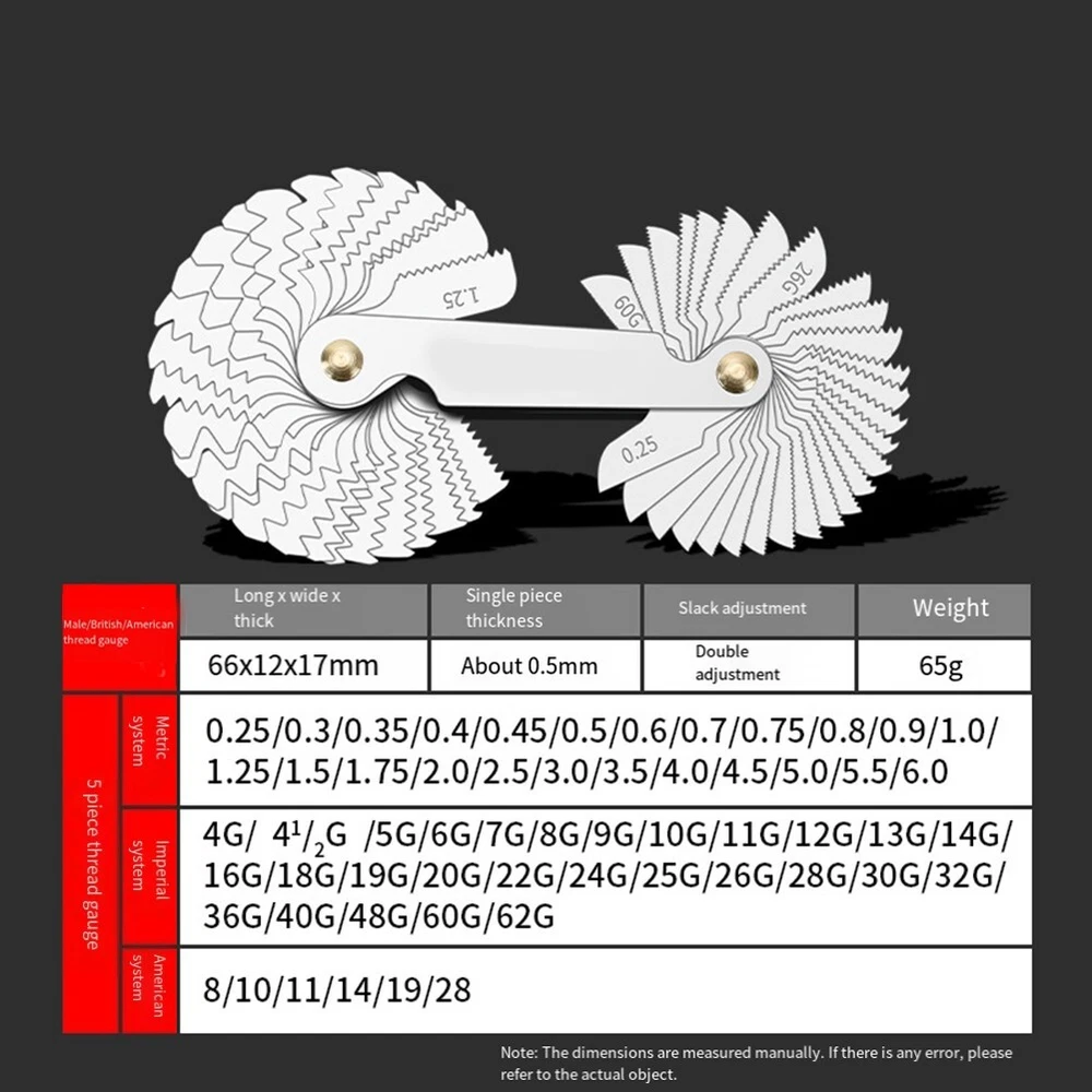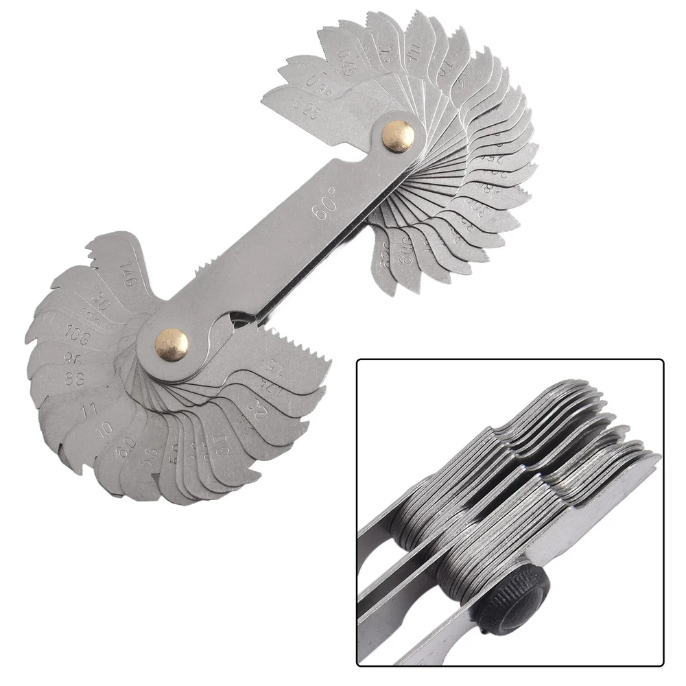 Product Description Features: *Quality carbon steel material: Made of Quality carbon steel, ensuring durability and reliability. *Accurate measurement, efficient and labor-saving: The thread gauge provides precise measurements, allowing for efficient and effortless use. *Scale clear identification: The etched scale ensures clear and easy-to-read markings for accurate measurements. *The electroplating process is easy to: The thread gauge is electroplated, protecting it from rust and ensuring long-lasting performance. *Notch design for easy removal: The tooth gauge features a convenient notch design, allowing for easy removal and hassle-free. Specifications: *Part Name:Thread thread gauge template gauge *Material:carbon steel *Size:As shown in the figure *Color:As shown Package Content: 58* Thread thread gauge Note: 1. The real color of the item may be slightly different from the pictures shown on website caused by many factors such as brightness of your monitor and light brightness. 2. Please allow slight manual measurement deviation for the data. Payment Payment must be completed within 5 days. If you have any problems about payment, please contact us via ebay message. Delivery details We only ship to confirmed ebay Order addresses. Please comfirm that your Order address is in line with your shipping address. Please kindly note that the c ombined shipping is not provided because the shipping fee is calculated by weight. Also, the each additional item means exactly the the same color and size. It takes about 7 -15 working days to US; about 10-30 working days to other countries. Transit time may be a little delayed because of the bad weather and customs inspection . If you do not receive your item within 30 working days since payment finished, please contact us immediately for further assistance. Contact us We strive for 100% customer satisfaction! Positive Feedback is very important to us. If you have any questions, p lease feel free to contact us via "Ask seller a question" . We will reply your email within 24 working hours.