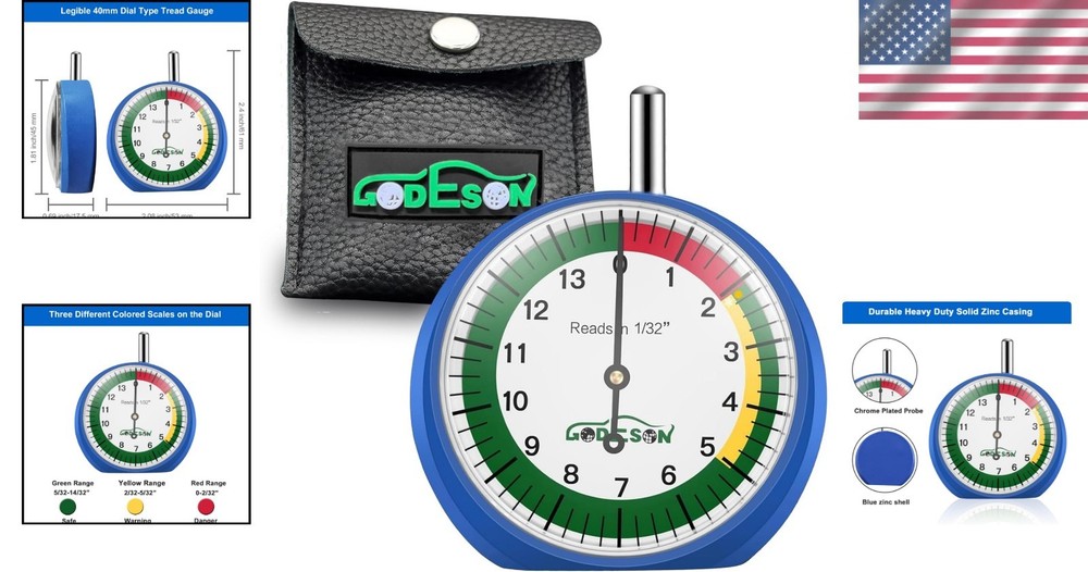 Accurate Tire Tread Depth Gauge with Ergonomic Design & Clear Readings - 88703 ‹ › ‹ › ‹ › ‹ › ‹ › ‹ › ‹ › ‹ › ‹ › Accurate Tire Tread Depth Gauge Precision Engineering: Reads in 1/32 inch increments for precise tire depth measurement. Enhanced Usability: Ergonomic design that comfortably fits in your hand, making tire maintenance a breeze for men and women alike. Color-Coded Zones: Features colorful zones on the gauge to clearly indicate tire health under varying weather conditions, allowing for quick visual assessments. Easy-to-Read Dial: 2-inch dial provides legible and straightforward readings, ensuring you can accurately assess your tire tread depth without any fuss. Robust Construction: Crafted from durable solid zinc casting for enhanced longevity and reliability. Stylish Design: Features a striking blue casing and a crisp white dial, merging functionality with a brief yet stylish aesthetic. Why Choose Our Tire Tread Depth Gauge? In the world of automotive care, precision is paramount. Our Accurate Tire Tread Depth Gauge combines exactness with a user-friendly design, ensuring that you can assess your tire condition effortlessly. The colorful zones allow for quick assessments, promoting safer driving in unpredictable weather. Whether you are a seasoned mechanic or a DIY enthusiast, this gauge is an essential tool. Don't compromise on safety - elevate your driving experience with our durable and ergonomically designed Tire Tread Depth Gauge. Invest today and enjoy peace of mind on every journey! Shipping Free & Fast Shipping - We offer free shipping to most of the USA with a normal delivery time of 3-7 days. However, due to the current situation, additional delivery time (up to 3 weeks) may be required for some items. Alternative Carriers - We may use alternative carriers (e.g. USPS, FedEx, UPS, etc.) to ensure your package arrives safely and on time. Due to the use of multiple carriers, we are unable to provide a tracking number automatically. Handling Time - Orders are processed and shipped within 1-2 business days of receiving cleared payment. Shipping Restrictions - Shipping to Alaska, Hawaii, Puerto Rico, Guam, and other US territories may incur shipping charges or delivery restrictions. Please contact us before ordering, or your order can be refunded/cancelled. State Restrictions - There may be restrictions based on your state of purchase. For example, certain items may not be shipped to California due to state regulations. Contact for Tracking Updates - If you require tracking updates or have any concerns about the delivery of your order, please feel free to contact us, and we will be happy to assist you. Return 30-Day Hassle-Free Returns - We want you to be completely satisfied with your purchase. If you are not, you can return the item within 30 days of receiving it for a full refund or exchange. Easy Return Process - To start a return, simply contact us and we will provide you with a prepaid return shipping label and detailed instructions. Restocking Fee - There are no restocking fees for returns. However, the buyer is responsible for return shipping costs if the return is not due to a seller's error. Refund Processing Time - Refunds will be processed within 5 business days of receiving the returned item in its condition. Payment We accept all major credit cards, PayPal, and Apple Pay for your convenience. Your payment information is secure and encrypted to ensure a safe and seamless transaction. Please complete your payment within 3 days of purchase to avoid any delays in shipping. Feedback Your feedback is extremely important to us. We strive to provide the best products and customer service possible. If you are satisfied with your purchase, please take a moment to leave us a positive review. If you have any concerns or issues with your order, please contact us before leaving negative feedback. We are committed to resolving any problems and ensuring your satisfaction. Contact Us If you have any questions or concerns, please feel free to out to our customer support team. You can contact us through the eBay messaging system. We are available Monday to Friday, 9:00 am to 5:00 pm EST, and we will do our best to respond to your inquiry within 24 hours. Buy it now and enjoy a pleasant shopping experience! Placement on Vehicle: Front,Left,Lower,Rear,Right,Upper OE/OEM Part Number: Tire Tread Depth Gauge Material: Stainless Steel,Zinc Finish: Glossy Type: Tire Pressure Gauge