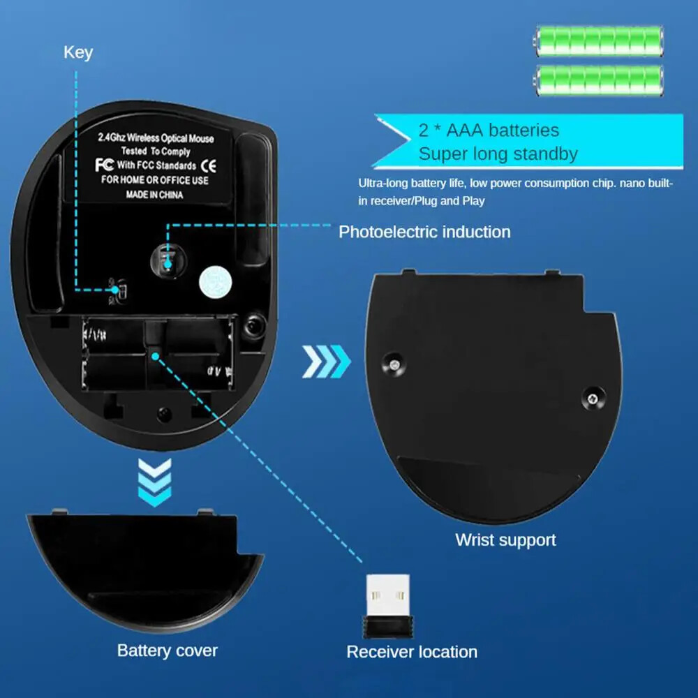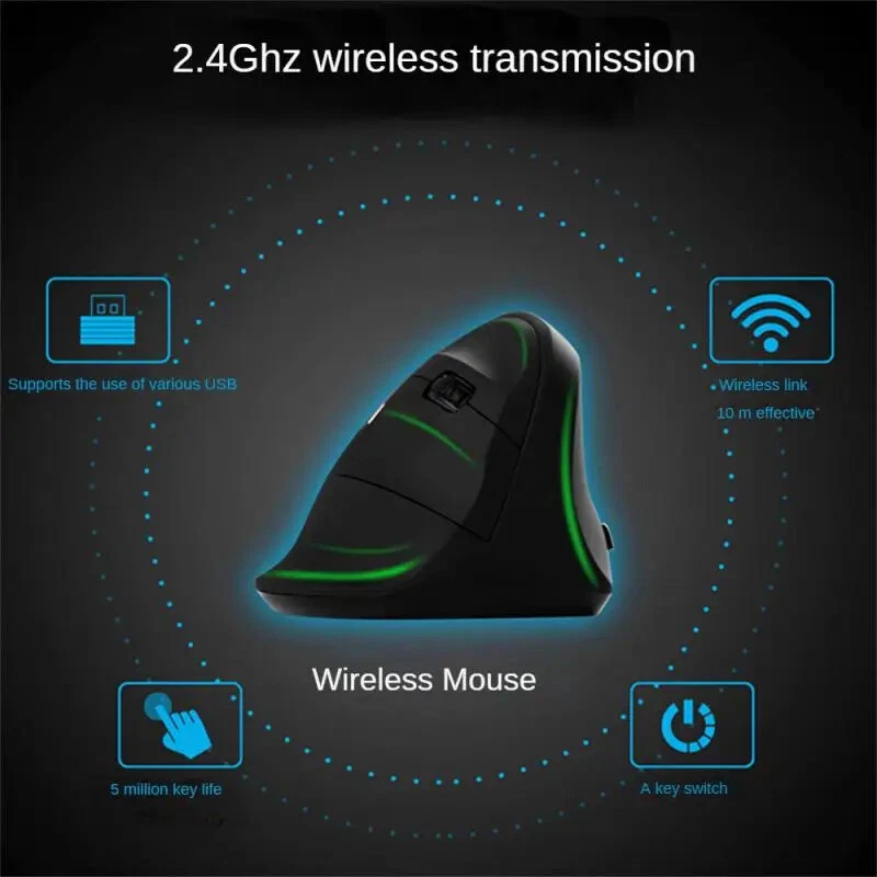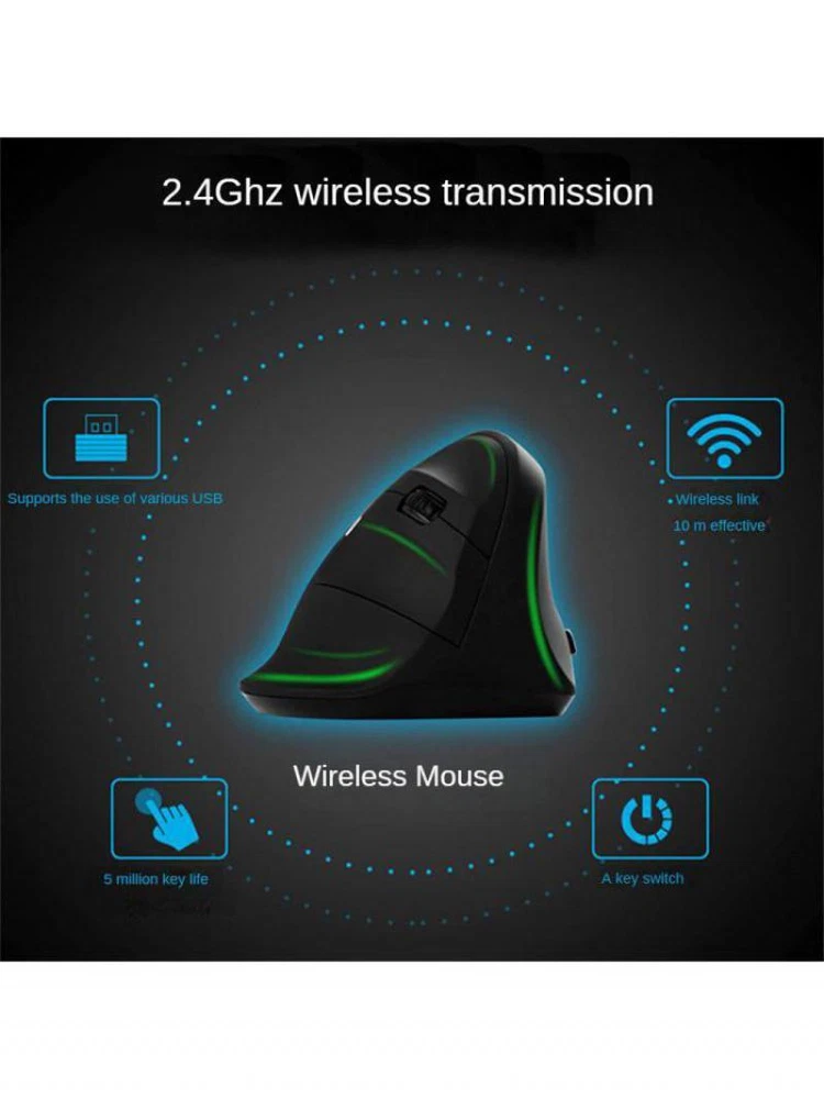 Accurate Upright Mouse Convenient Comfortable Wireless Mouse Usb Vertical Mouse Mouse Chargable Wrist Mouse Grip Type Wireless Description: Working Mode: Photoelectric Optical Resolution: 1600dpi(dpi) Type: Wireless Mouse Applicable Object: Office, Home And So On Color: Black Wireless Technology: 2.4G Whether To Support Plug And Play: Yes Whether To Support Ergonomics: Yes Surface Technology: Hand Paint Specifications: 1. Free Switching, A Key To Get, To Meet Your Different Needs. 2. Smart Core Upgrade Good Quality, Ergonomics More Comfortable. 3. Vertical Vertical, Snail Bionic Feel, Effective Prevention Of Mouse Hand. 4. With Three-gear DPI Photoelectric Sensor, Fast Movement Can Also Accurately Locate Mature Technology Matching, Easy To Deal With Daily Work And Learning Needs. 5. Wireless Vertical Mouse Side Grip Posture, The Liberation Of The Wrist. Package Included: 1 * Mouse