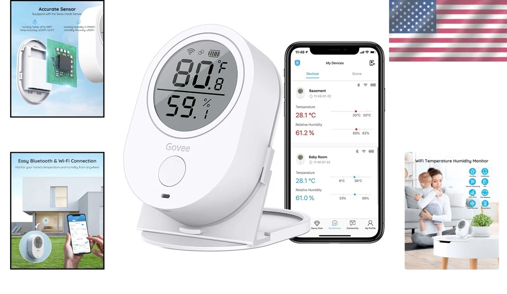 Accurate WiFi Hygrometer Thermometer with LCD Display and Mobile Notifications ‹ › ‹ › ‹ › ‹ › ‹ › ‹ › ‹ › ‹ › ‹ › Accurate WiFi Hygrometer Thermometer Stay ahead of your environment with our state-of-the-art WiFi Hygrometer Thermometer, designed for the discerning individual who values precision and convenience. Key Features: WiFi Connectivity: Connect seamlessly with 2.4GHz WiFi (note: 5G support not included) or Bluetooth for remote monitoring of humidity and temperature. Instant Alerts: Receive mobile notifications when temperature and humidity levels exceed your preset values, ensuring peace of mind while you're away. Exceptional Accuracy: Equipped with a Swiss-made sensor, this hygrometer thermometer delivers temperature accuracy within ±0.54℉/±0.3℃ and humidity accuracy ±3%. Dual Display Options: View real-time temperature and humidity data on an easy-to-read LCD screen, or access both current and historical data through the intuitive app. Long-term Data Tracking: Record and export over 2 years of data in CSV format. Choose your data intervals based on personal preference. User-Friendly App: Enjoy features such as low battery alarms, easy settings, data sharing, and the ability to switch between °F/°C effortlessly. Why You Need This! Monitoring your home’s environment has never been easier or more accurate. Whether you're a busy professional, a parent, or someone who loves their living space just right, this Accurate WiFi Hygrometer Thermometer is your essential tool. With the ability to keep track of your surroundings remotely, you'll feel more at ease knowing you're always informed about your home environment. Invest in your comfort and security today – order your Accurate WiFi Hygrometer Thermometer and elevate your monitoring game to an unparalleled level! Shipping Free & Fast Shipping - We offer free shipping to most of the USA with a normal delivery time of 3-7 days. However, due to the current situation, additional delivery time (up to 3 weeks) may be required for some items. Alternative Carriers - We may use alternative carriers (e.g. USPS, FedEx, UPS, etc.) to ensure your package arrives safely and on time. Due to the use of multiple carriers, we are unable to provide a tracking number automatically. Handling Time - Orders are processed and shipped within 1-2 business days of receiving cleared payment. Shipping Restrictions - Shipping to Alaska, Hawaii, Puerto Rico, Guam, and other US territories may incur shipping charges or delivery restrictions. Please contact us before ordering, or your order can be refunded/cancelled. State Restrictions - There may be restrictions based on your state of purchase. For example, certain items may not be shipped to California due to state regulations. Contact for Tracking Updates - If you require tracking updates or have any concerns about the delivery of your order, please feel free to contact us, and we will be happy to assist you. Return 30-Day Hassle-Free Returns - We want you to be completely satisfied with your purchase. If you are not, you can return the item within 30 days of receiving it for a full refund or exchange. Easy Return Process - To start a return, simply contact us and we will provide you with a prepaid return shipping label and detailed instructions. Restocking Fee - There are no restocking fees for returns. However, the buyer is responsible for return shipping costs if the return is not due to a seller's error. Refund Processing Time - Refunds will be processed within 5 business days of receiving the returned item in its original condition. Payment We accept all major credit cards, PayPal, and Apple Pay for your convenience. Your payment information is secure and encrypted to ensure a safe and seamless transaction. Please complete your payment within 3 days of purchase to avoid any delays in shipping. Feedback Your feedback is extremely important to us. We strive to provide the best products and customer service possible. If you are satisfied with your purchase, please take a moment to leave us a positive review. If you have any concerns or issues with your order, please contact us before leaving negative feedback. We are committed to resolving any problems and ensuring your satisfaction. Contact Us If you have any questions or concerns, please feel free to reach out to our customer support team. You can contact us through the eBay messaging system. We are available Monday to Friday, 9:00 am to 5:00 pm EST, and we will do our best to respond to your inquiry within 24 hours. Thank you for supporting our small family business! UPC: Not Set Unit Quantity: 1 Displayed Measurements: Hygrometer/Humidity,Temperature,Humidity Features: Bluetooth,Data Logger,Digital Display,LCD Display,Wireless,App Notification Alert Material: Plastic Power Source: Battery Brand: Unbranded Type: Portable Weather Station System of Measurement: Celsius/Fahrenheit Measuring Technology: Electric Model: Not Set Item Length: Not Set Item Height: Not Set Item Width: Not Set Size: Small Color: Black Country/Region of Manufacture: Not Set Item Weight: 4.16 oz MPN: Not Set Manufacturer Warranty: Not Set Unit Type: oz