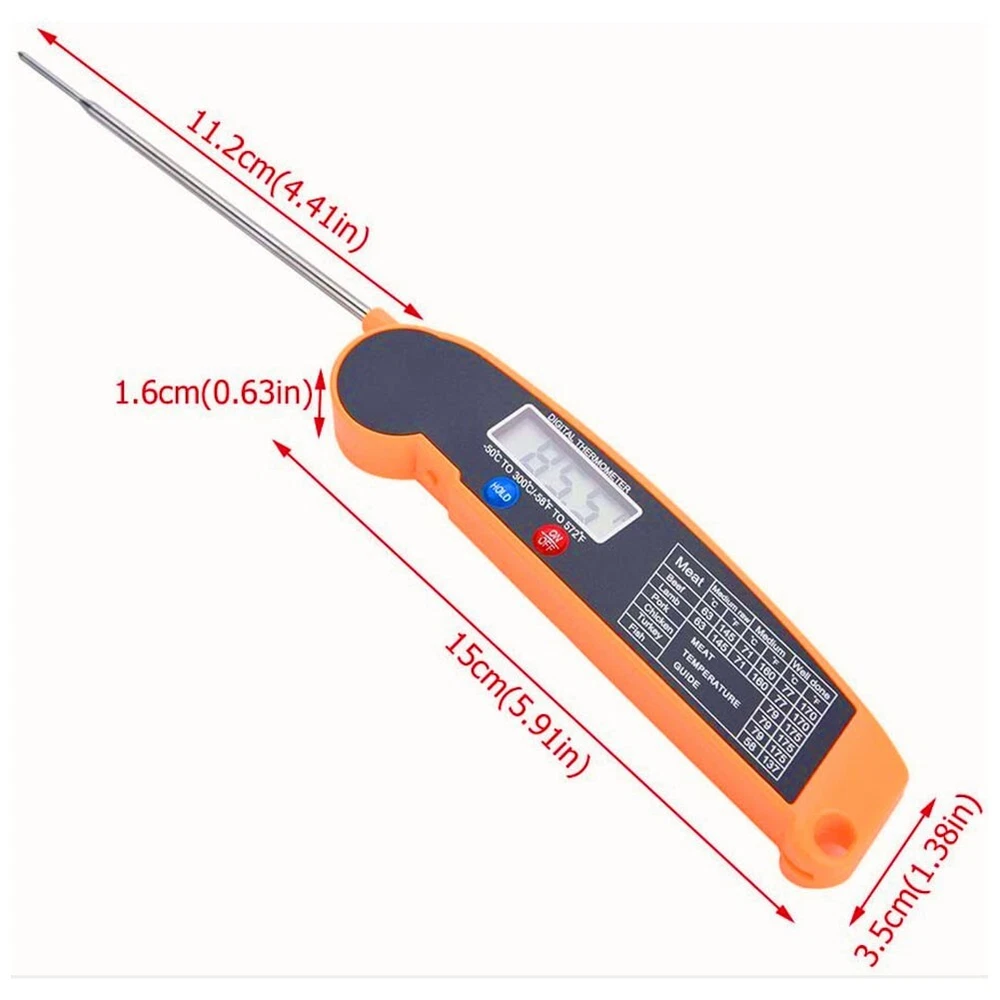 Accurate and convenient Instant Read Digital Food Thermometer for perfect Grill DESCRIPTION Features: *Fast and Accurate Readings: The for Instant read digital food thermometer provides fast and accurate temperature readings for your grill cooking and BBQ. *Large LCD Display: The thermometer features a large LCD display that allows for easy and clear reading of the temperature. *Wide Temperature Range: With a wide temperature range of-58°F to 572°F(-50°C to 300°C), this thermometer is suitable for various cooking tasks. *Foldable Design: The thermometer is designed with a foldable probe, making it convenient to carry and store. *Versatile Use: This thermometer can be used for measuring the temperature of various types of meat, liquids, and even candy making. Specifications: *Part Name: for Instant Read Digital Food Thermometer *Material:plastic and stainless steel *Size:As the picture shows *Color:Black and orange Package Content: A barbecue thermometer(without button battery) Note: 1. The real color of the item may be slightly different from the pictures shown on website caused by many factors such as brightness of your monitor and light brightness. 2. Please allow slight manual measurement deviation for the data. POLICES Shipping Payment WARRANTY We only ship to confirmed ebay Order addresses. Please comfirm that your Order address is in line with your shipping address. Please kindly note that the c ombined shipping is not provided because the shipping fee is calculated by weight. Also, the each additional item means exactly the the same color and size. It takes about 7 -15 working days to US; about 10-30 working days to other countries. Transit time may be a little delayed because of the bad weather and customs inspection . If you do not receive your item within 30 working days since payment finished, please contact us immediately for further assistance. Payment must be completed within 5 days. If you have any problems about payment, please contact us via ebay message. We strive for 100% customer satisfaction! Positive Feedback is very important to us. If you have any questions, p lease feel free to contact us via "Ask seller a question" . We will reply your email within 24 working hours.