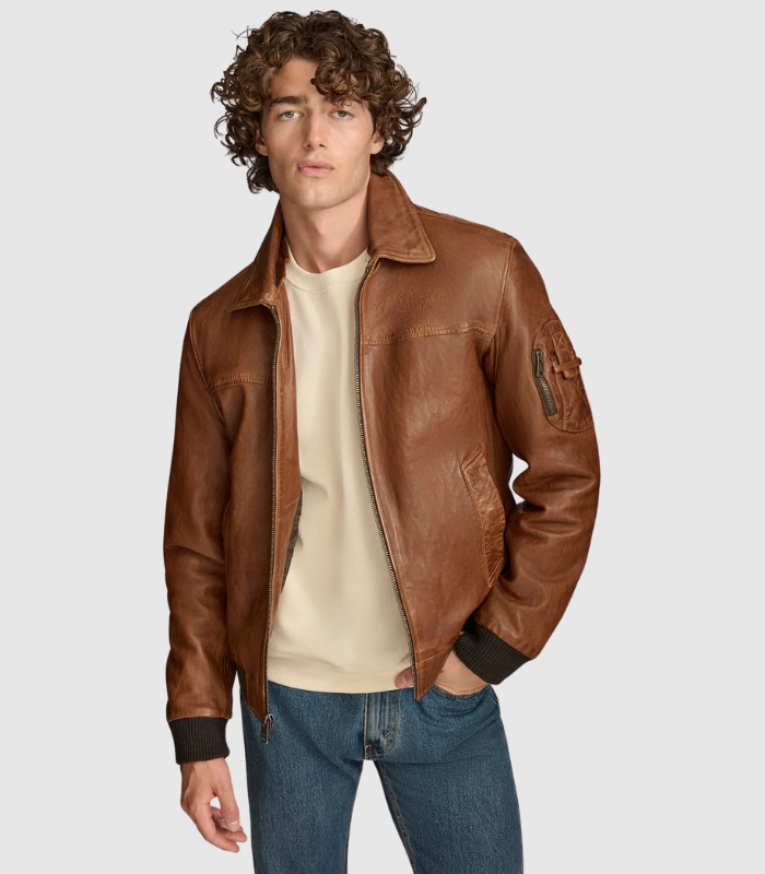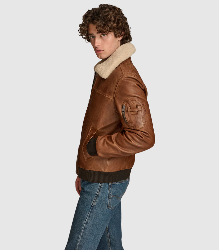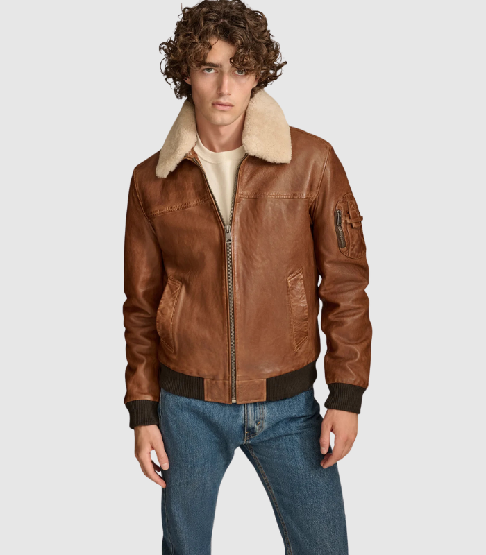 Material : Crafted from 100% genuine leather with a plush polyester lining Silhouette : Classic bomber style with a modern twist Closure : Reliable zipper closure for easy access Pockets : Features 2 welt pockets, 1 zipper pocket, and 2 interior pockets for secure storage Details : Includes a removable lamb shearling collar and a sleeve pocket for added convenience Comfort Features : Rib knit at hem and cuffs, plus eyelets at underarms for breathability Care : Professional leather cleaning only to preserve quality Introducing the Ace Bomber Jacket, an exquisite blend of style and practicality designed for the modern man. Made from 100% genuine leather, this bomber jacket not only looks sophisticated but also ensures lasting durability. The soft polyester lining enhances comfort, making it a pleasure to wear throughout the day. A secure zipper closure makes it easy to slip on, while the two welt pockets and a zipper pocket provide ample space for your essentials. Inside, you’ll find two additional pockets for added convenience. The removable lamb shearling collar adds a luxurious touch, allowing you to customize your look based on the weather or occasion. For additional functionality, the jacket features a sleeve pocket and rib knit details at the hem and cuffs, ensuring a comfortable fit. Eyelets at the underarms promote breathability, making it ideal for layering. Whether you’re dressing up for a night out or looking for a stylish everyday jacket, the Ace Bomber is your go-to choice. To maintain its exceptional quality, we recommend professional leather cleaning only.