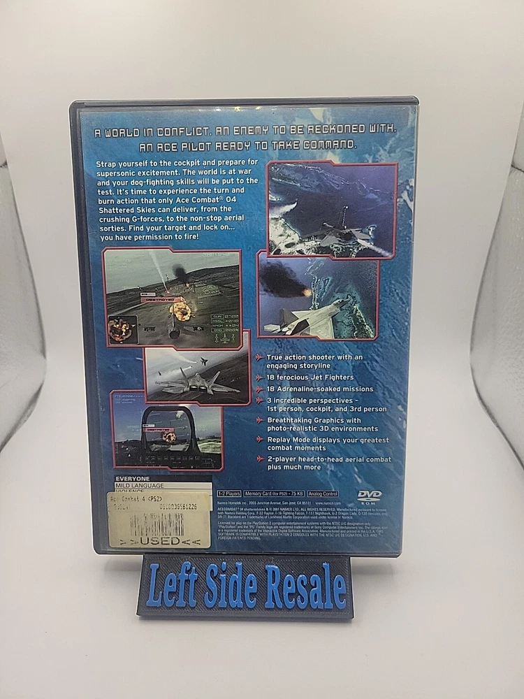 Immerse yourself in the thrilling world of Ace Combat 4 Shattered Skies for PlayStation 2. This game offers an exciting combination of battle and action-adventure genres, set in a simulation environment. With a rating of E-Everyone, it is suitable for players of all ages. This unit includes the game disc and is compatible with NTSC-U/C (US/Canada) region codes. The features of this game include multiplayer mode, complete edition, and a manual. The game was released in 2001 and is published by PlayStation. Please note that this item does not come with the manual.