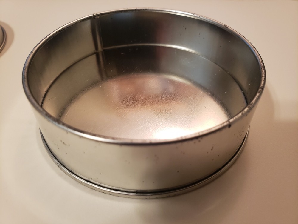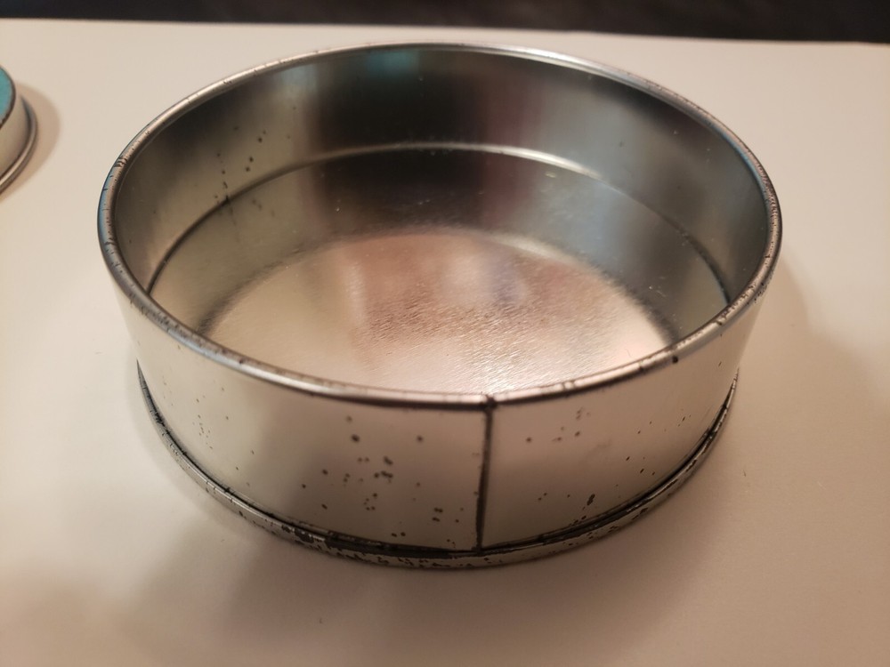 Never used, but there are spots/signs of age on the tin, possibly from moisture (see photos). The patches are in perfect like-new condition.