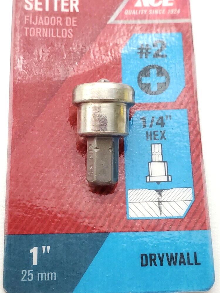 Item Description: In this listing you get ..... 1 each Ace Hardware 2060416 #2 Drywall Screw Setter 1" Long 1/4" Hex. Countersinks screws to the proper depth in drywall, particle board, & plywood. Shipping: We ship same day ( Monday - Friday ONLY ) if an item is purchased by 1pm ( E/Time ) on those days. If an item is purchased after 1pm ( E/Time ) then it will not ship until the next business day. If you need expedited shipping please let us know, but keep in mind there might be an additional charge that will need to be paid upfront before an item will be shipped. International Shipping: We ship INTERNATIONALLY using the EBAY Global Shipping Program ( GSP) . You, the buyer, can choose which international shipping service you want to use and we will ship your purchase to the United States ( GSP ) shipping center and they handle your package from there. Return Policy: We do not except returns at this time. Thank you for your understanding. Please make sure to read the description and PLEASE, PLEASE ask us any questions that you may have. We will get back with you as soon as possible and in a timely manner. Feedback: Feedback plays an important part on EBAY. We work hard in making sure to provide our customers with above and beyond customer service so that we can earn your POSITIVE FEEDBACK . Please email us about any problem(s) so we can do our do diligence and work with you, to resolve any issue(s) that might arise before leaving NEGATIVE FEEDBACK . We do leave our customers Positive Feedback at the time of shipping and ask that you please pass the same courtesy along to us. THANK YOU IN ADVANCE!!! Payments: We except PayPal and all major credit cards ONLY. All item must be paid for in 3 business day(s). On day four, a " FAILURE TO PAY" case will be opened with EBAY. Communication: When you have a question about an item or a problem with a purchase, please send us an email via EBAY messages. It is the fastest way for us to answer a question or help with a concern. Terms of Sale: Some of our items may be purchased as surplus inventory. Almost everything we sell should be thought of as NOS - "new but old " stock. Customer Service: I know what it is like to be a customer myself and to receive good and bad customer service. Therefore, it is my goal to give the best service to my customers. I want you to be completely happy and satisfied with your purchase. Please send me a message with any and all questions or concerns you might have and I will do my best to fix the situation. But please keep in mind, some things might be out of my control.... but I promise to do everything I can to remedy the situation.