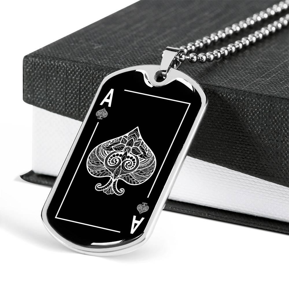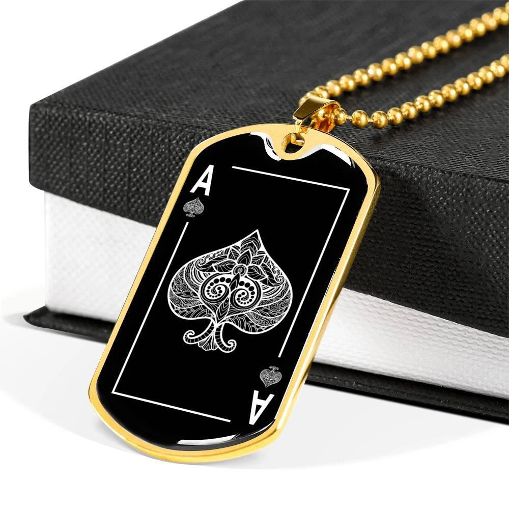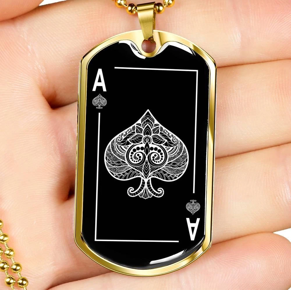 $ 26.38Lucky Poker Dog Tag Stainless Steel or 18k Gold 24" Chain