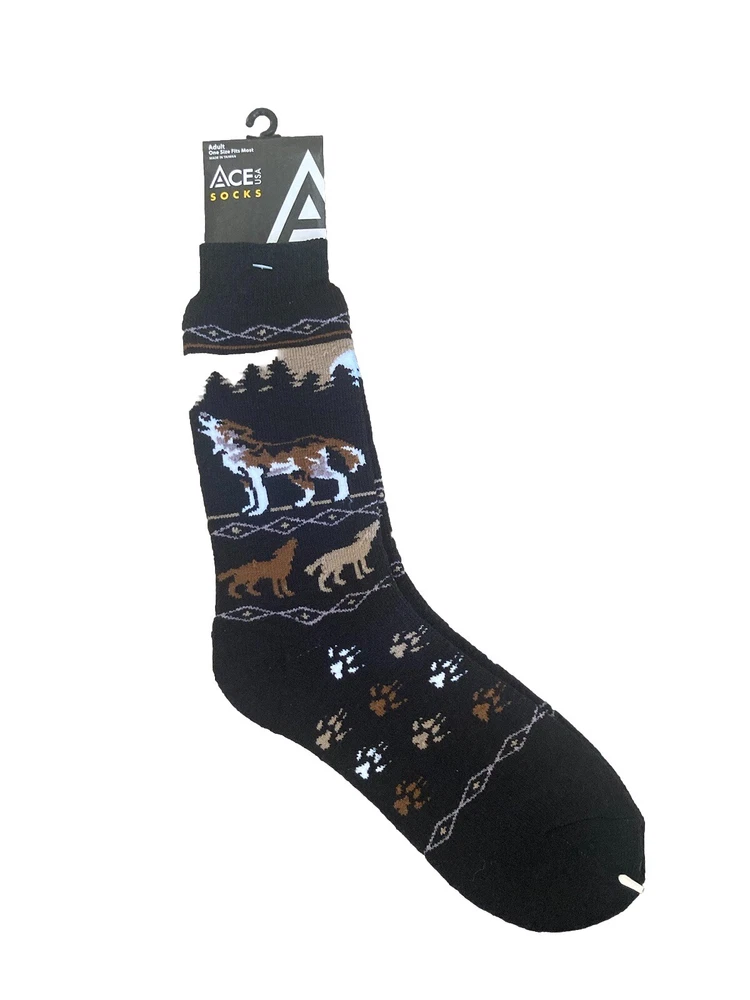 Ace USA Howling Wolf Towel/Cozy Unisex Adult Socks. Condition is New with tags. Shipped with USPS Ground Advantage.