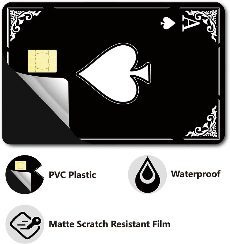 Ace of Speads Custom Vinyl Credit Card Sticker by CC Wraps ✨ Make Your Card Stand Out! ✨ Show your personality with the Ace of Speads Custom Vinyl Credit Card Sticker ! Featuring a bold and unique design, these stickers turn ordinary cards into eye-catching conversation starters while keeping them functional and stylish. These high-quality vinyl sticker skins are perfect for transforming your credit, debit, or transportation cards into standout pieces. Made from waterproof and fade-resistant vinyl, they are built to last. Each one fits standard cards and includes a precise chip cutout for functionality. Upgrade your wallet with a statement that’s as bold as you are! Set Includes : 2 matching " Ace of Speads " designs. Material : Durable, waterproof, and fade-resistant vinyl. Compatibility : Fits standard credit, debit, and transportation cards. Chip Cutout : Precisely designed for cards with small chips. Application : Easy peel-and-stick installation for hassle-free use. Individual Sticker Dimensions : 3.375 in x 2.125 in ✨ Don’t wait—add a touch of personality to your wallet now! ✨