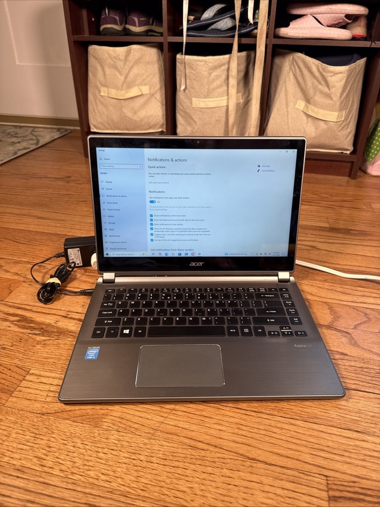 The Acer Aspire V5 4735 is a sleek silver notebook/laptop with a 15.6-inch touchscreen display, powered by an Intel Core i5 3rd Gen processor running at 1.60 GHz. It boasts 12GB of RAM and a 120GB SSD for fast and efficient performance. With Windows 10 Pro operating system, this laptop is perfect for both work and leisure activities, offering a smooth and user-friendly experience. The integrated on-board graphics ensures basic functionality for everyday tasks, making it a reliable choice for users looking for a reliable and versatile laptop.