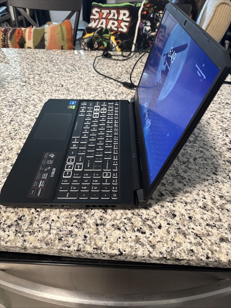 The Acer Nitro 5 15.6 Laptop features powerful performance with an Intel Core i5 11th Gen processor, NVIDIA GeForce RTX 3050 dedicated graphics, and 16 GB of RAM. It is equipped with a 512 GB SSD for fast and efficient storage, making it ideal for gaming and demanding tasks. With a sleek black design and a high-resolution screen, this laptop offers excellent visuals and connectivity options such as HDMI. Running on Windows 11 Home, the Acer Nitro 5 is a top choice for gamers and professionals looking for a reliable and high-performing system. The product comes with the wall charger as well as the Acer nitro gaming headset. There are a few light scratches on the back of the screen, however the display and keyboard face are free of wear and tear.