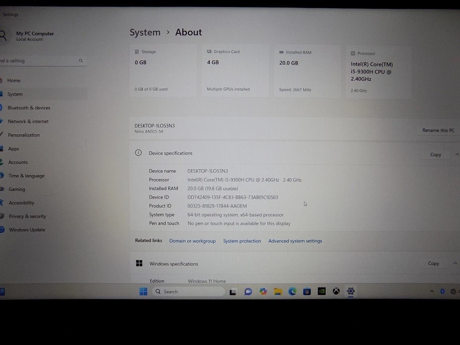 SUPER BUY ITEM > > > > > - > COMPUTER SURPLUS MART COMPUTER ITEMS THAT CAN BE SPECIAL. Acer Nitro 5 AN515-54 i5 15.6" 1TB +256GB-SSD 20GB Win11 *Gaming PC A++ Condition TESTED AND WORKING EXCELLENT CONDITION ITEM: Acer Nitro AN515-54, -5812, 15.6", Color Black, Matte LCD Screen, Red Backlit Keyboard, In *A++ Condition, Showing Some to No Scuff on the covers, with Show 1 tiny scratch on back center hinge line, if can see it, (See in Pictures). Good Battery - Holds a charge, where will total charge up to 100%. A Great Gaming PC - Acer Nitro AN515-54-5812, Fast 2.40 GHz - 2.40 GHz. Ready to work, Windows 11. Come with No Charger, Laptop only. Sold as is, Return accepted. Specifications: (Genuine Parts) > Operation System Activated > 1 TB Hard Drive + 256 GB Solid State Drive > Version Windows 11 > RAM Sizes 20 GB (GAMING SYSTEM:) > NVIDIA GeForce GTX 1650 - 64-bit > Intel UHD Graphics 630 - Maximum Resolution 1920 x 1080 Things to know about My PC Computer: The laptop is already preloaded with the Windows 11 Home Edition, Full Version the earlier edition. This meaning that your laptop is ready to work. And will not need the update or any refreshing by the option offered on the bottom toolbar for the latest version of the Customer Supported Windows 11. Suggestion: Please allow the use of your computer time to adjust to your new applications and the Windows Updates will automatically update in due time. And enjoy your PC computer. **************************************************** **************************************************** ITEM PICTURES: Sorry, Due to the amount items and pictures taken of each item selling. The seller ad might only have pictures to view of the whole parts and not show the detail parts of the items. If any part of a item is not shown in a picture, will be because the part was tested and is in good working condition with no damages to show in detailed picture. **************************************************** **************************************************** Buyers, after won a "Super Buy Item", Please make payment for your item within 7 days of date won. When payments not received after second day of the item won will be relist. To relist a item will allow non won bidders another chance to bid on same item to win. Sorry, Used i tems selling or any items selling for parts or repair options, No returns are accepted . Any "New Items" sold are returns accepted. Any used item "No Return is Accept" after 4 days of the delivered date. If buyer request a return item within the 4th day of the delivered date. Items returned will receive a refund within 14 days, After seller received item for a total refund. ( Sorry, No combine shipping, Items not part of a complete included item is shipped in separate boxes.) Thank You, for your buyer cooperation. __________________________________________________________