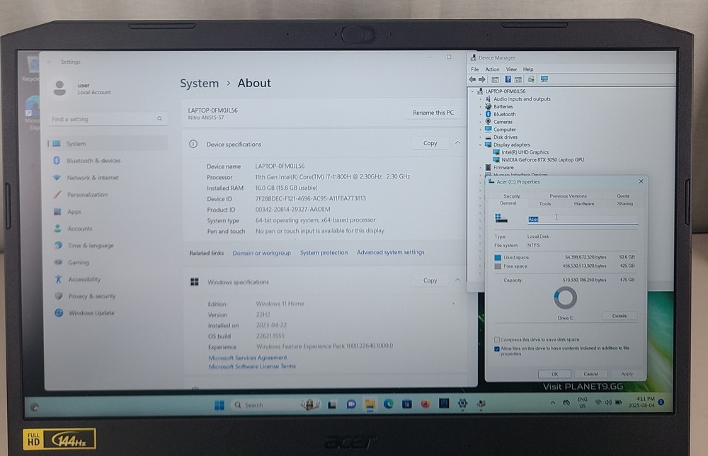 Acer Nitro 5 AN515-57 Core i7-11800H 16GB 512GB SSD WIN 11 HOME NVIDIA GeForce RTX 3050 Laptop is in Excellent Used Condition. There may be some wear from previous use but nothing that will affect the performance of the Laptop. The Laptop has been tested and works as it should. Windows 11 Home was Freshly Installed and Activated. The Battery does hold a charge but the run time is unknown. The Box (Original) and AC Adapter are Included but the AC Adapter IS NOT the Original AC Adapter. NO Other Accessories are Included. What is in the picture is what you will be receiving. What's Included: Acer Nitro 5 AN515-57 Laptop Original Box Liteon AC Adapter Specs: Processor: Intel Core i7-11800H @ 2.30GHz RAM: 16GB Storage: 512GB SSD OS: Windows 11 Home Freshly Installed & Activated Graphics: NVIDIA GeForce RTX 3050 Graphics Battery: Holds a charge BackLit Keyboard Shipping Box Size 21.5 X 12.5 X 3 Estimated Package Weight: 7.2lbs. Item SKU: M13866 Item Location: Office Shipping Services: We use USPS and UPS as our main shipping services. Combined Shipping : If you purchase multiple items we will always combine them to save money on shipping charges. Handling Time: All payments received by 12:00 p.m. Monday - Friday will normally ship the same business day. We do not ship items on Saturday or Sunday. New & Used Working Items: All new and used working items have a 30 Day return policy from the time of receipt unless otherwise stated in the listing. AS IS Items: AS IS items have NO warranty and are sold for PARTS or SALVAGE ONLY ! DOA Items: We will exchange any item found to be defective, or, at the customers request, parts may be sent to replace a part found to be defective and causing the item to malfunction. PLEASE NOTE : To be covered by Paypal we have to ship to the address listed in the Paypal payment. So, before submitting your payment please make sure that the address listed is where you want the item shipped. Please do NOT email after you've made your payment and ask us to send it to another address. Payment must be received within 4 days after notification of total payment due. Texas residents will be charged 8.25% sales tax unless you can provide a resale certificate. BUSINESS HOURS: Monday-Friday, 8:00 a.m.-4:30 p.m.