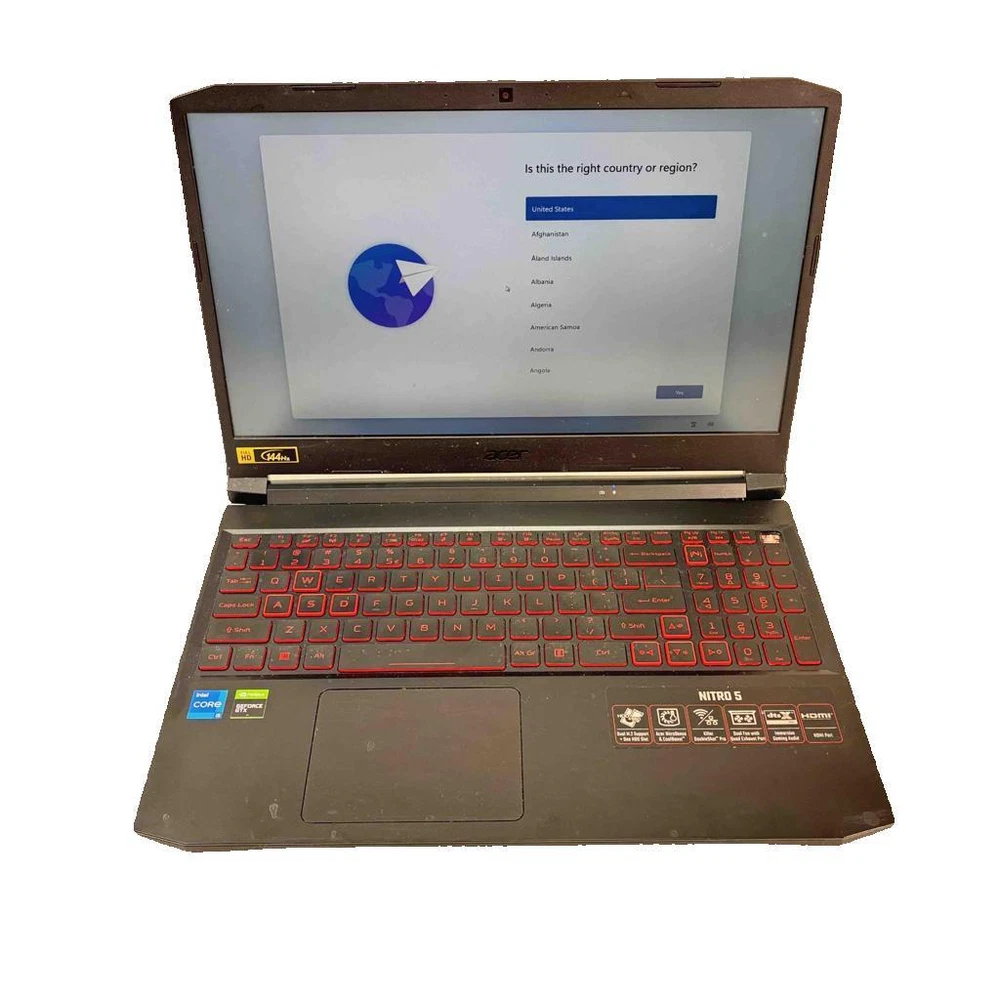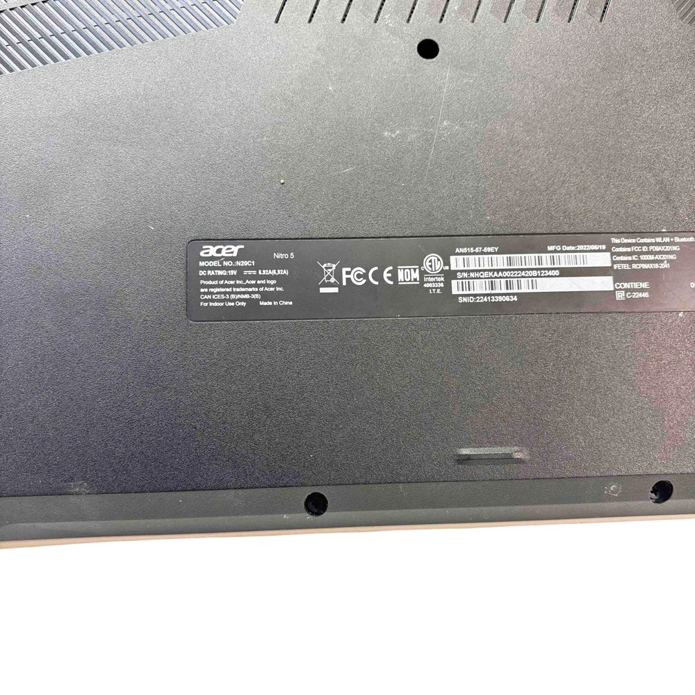 PAWN AMERICA KEY TECHNICAL SPECIFICATIONS : Brand: Acer Screen Size: 15.6" Processor: Intel Core i5-11400H Model: N20C1 Operating System: Windows 11 Home Type: Gaming Laptop Processor Speed: 2.69GHz SSD Capacity: 512GB Features: Coolboost GPU: Nvidia Geforce GTX 1650 Storage Type: SSD Release Year: 2022 Color: Black And Red Maximum Resolution: 1920x1080 MPN: NH.QEKAA.002 Series: Nitro RAM Size: 8GB Most Suitable For: Gaming Graphics Processing Type: Hybrid Graphics Country/Region of Manufacture: China Features : Unlock unbeatable gaming performance with the Acer Nitro 5 AN515-57-59EY. Featuring a powerful processor and immersive graphics, its perfect for gaming at high settings. This unit is in its original box, though the power button is missing – grab a great deal on this lightly used gaming powerhouse! What's Included : Acer Nitro 5 N20C1 Windows 11 I5-11400H 2.69GHz GTX 1550 8GB RAM 512GB SSD 15.6" Charger What's Not Included : Missing Power Key Cap Condition : This laptop is previously owned. Power button cover is missing. Scratches and light scuffs mainly on bottom. Screen is clear and free from cracks. Please see photos for details. Reference: 24121036252 Note: Overnight Shipping order cut off time is 1PM CST. HOME | LOCATIONS | SERVICES | PRODUCTS | CAREERS | CONTACT US
