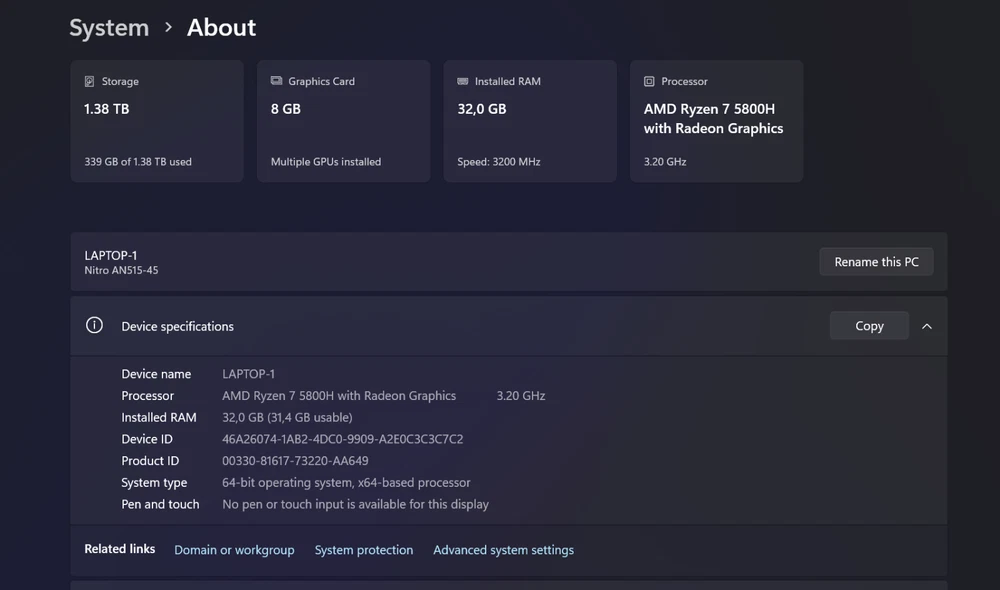 The laptop was used mainly at school for programming and is in very good condition. I’m selling it because I no longer have a use for it. The RAM has been upgraded from 16GB (2x8GB) to 32GB 3200 MHz(2x16GB) . The laptop was purchased in November 2022. I am selling it together with an EU outlet charger.