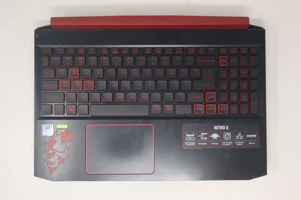 Acer Nitro 5 Keyboard/Motherboard Intel Core i5 9th Gen 16GB RAM No HDD *Read* Specs CPU: Intel Core i5 9th Gen Memory: 16GB Hard Drive: Not Included Resolution: Not Specified Screen Size: Not Included Description This unit contains moderate scratches, scuffs, and dents in several spots on the body. The laptop is in decent condition suitable for parts. The lack of a screen, battery, and other essential components means it is primarily intended for repair or salvage. This unit has not been fully tested and is sold as-is for parts. Note: This listing is for parts only. The screen, AC adapter, hard drive, and battery are not included. The unit shows some wear with a few missing screws on the back cover. Minor scuffs are visible. The keyboard has visible stickers and red accents. Included* ACER Nitro Chassis/Motherboard Not Included* Screen AC Adapter Hard Drive Battery *Please note this is not an exhaustive list of items that are included or not included. If something is not listed here do not assume please ask. SKU: Serial Number: