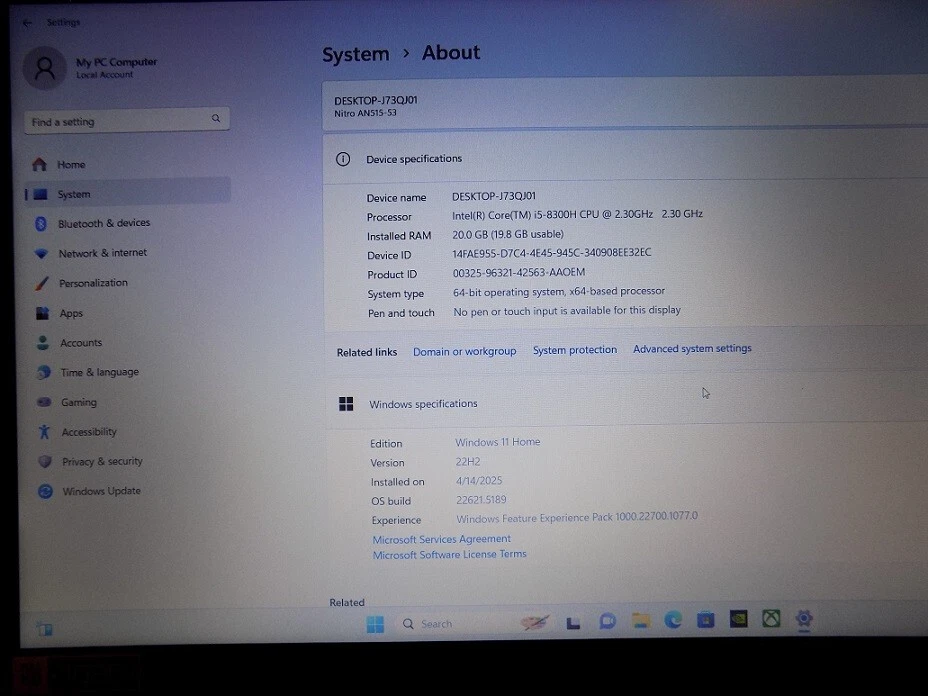 Acer Nitro AN515-53 15.6" Gaming Laptop i5 1TB HDD 256GB SSD 20GB RAM Win11 A++ Condition