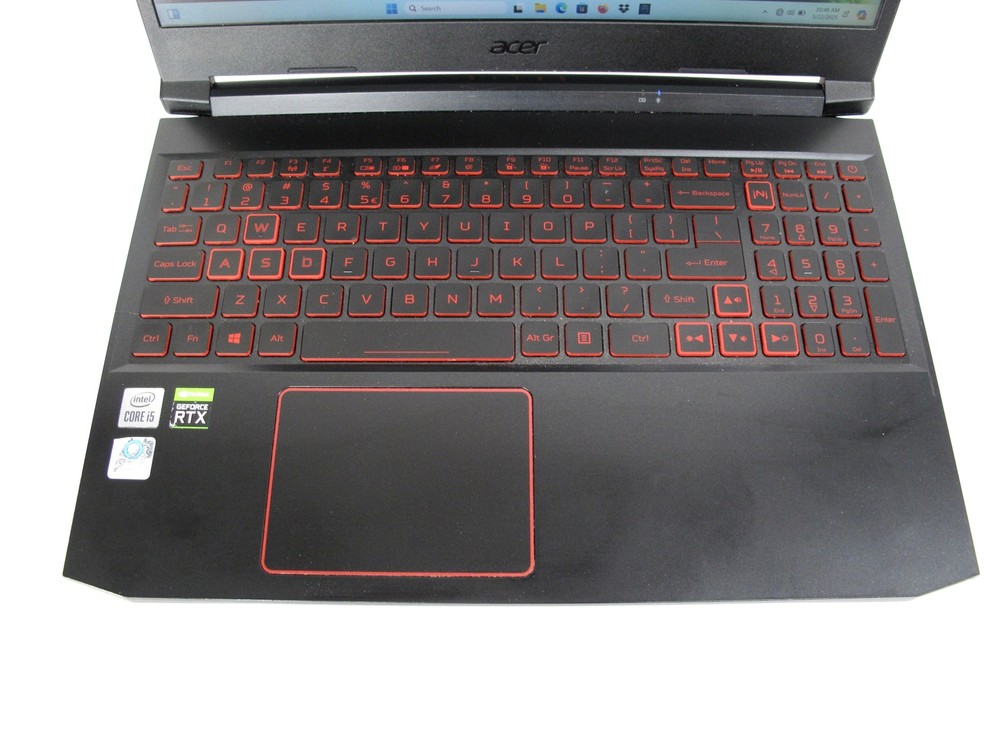 Item History Pre-owned Details and Specs This information is to be used for reference only. Accessories or warranties mentioned in this section may not apply to this specific item. Please check the "What's Included" section and photos of this listing to see everything that comes with this item. Aspect Ratio:16:9.Connectivity Technology: HDMI,USB,Ethernet,WiFi,Bluetooth Dominate the Game: With the 10th Gen Intel Core i5-10300H processor, your Nitro 5 is packed with incredible power for all your games RTX, It's On: The latest NVIDIA GeForce RTX 3050 (4GB dedicated GDDR6 VRAM) is powered by award-winning architecture with new Ray Tracing Cores, Tensor Cores, and streaming multiprocessors support DirectX 12 Ultimate for the ultimate gaming performance Visual Intensity: Explore game worlds in Full HD detail on the 15.6" widescreen LED-backlit IPS display with 1920 x 1080 resolution, 144Hz refresh rate and 80% screen-to-body, 16:9 aspect ratio Internal Specifications: 32GB DDR4 2933MHz Memory (2 DDR4 Slots Total, Maximum 32GB); 256GB NVMe SSD (2 x PCIe M.2 Slots, 1 x 2.5" Hard Drive Bay Available) Prioritize Your Gameplay: Killer Ethernet E2600 and Intel Wi-Fi 6 AX201 gives you an edge online by taking control of your network and prioritizing your gameplay Stay Cool Under Pressure: When heavy use requires an added boost, Acer CoolBoost technology increases fan speed by 10% and CPU, GPU cooling by 9% compared to auto mode, overall increasing thermal performance by 25% for better gaming comfort Funcitonal Condition Full Functionality - This item is in full working order with all features operational. Functional Condition Notes (if any): Cosmetic Condition Average - It looks to be in average cosmetic shape for an item of this type with a typical amount of cosmetic wear to a comparable item of its age and use as shown. Cosmetic Condition Notes (if any): There is a small crack in the bezel as shown but it doesn't inhibit functionality at all. What's Included Power Adapter SKU D21367ACE Shipping & Handling Notes (if any):
