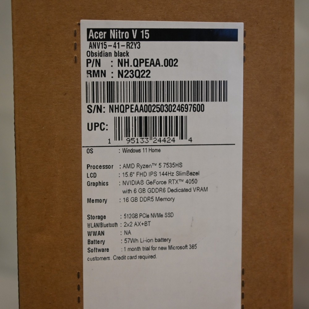 The Acer Nitro V ANV15-41-R2Y3 is a high-performance gaming laptop featuring an AMD Ryzen 5 processor, integrated NVIDIA GeForce RTX 4050 GPU, and 16GB DDR5 RAM. With a 15.6-inch screen size and a maximum resolution of 1920 x 1080, this laptop is ideal for gamers looking for a powerful and reliable gaming experience. The 512GB SSD provides fast and efficient storage for all your gaming needs, while the sleek black design adds a touch of style to this Nitro series model from Acer.