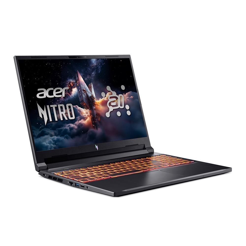 Nitro V 16 AI Copilot+ PC ANV16-61-R8UE 16" Gaming Laptop Computer - Shale Black AMD Ryzen AI 7 350 2.0GHz Processor; NVIDIA GeForce RTX 5060 8GB GDDR7; 16GB DDR5-5600 RAM; 1TB Solid State Drive AMD Ryzen AI 7 350 2.0GHz Processor NVIDIA GeForce RTX 5060 8GB GDDR7 16GB DDR5-5600 RAM 1TB Solid State Drive Microsoft Windows 11 Home microSD Memory Card Reader Killer Ethernet E2600 2x2 Wi-Fi 6E Bluetooth 5.3 16" WUXGA IPS 180Hz Display In the world of high-stakes digital realms, the Acer Nitro V 16 AI is more than a machine-it's a gateway to boundless creativity and gaming precision. With AI-driven insights that adjust to every demand, this device blends raw power with intuitive control, taking you from intense battles to endless creative flow without missing a beat. The Acer Nitro V 16 AI is built for gaming on the move with an AMD Ryzen AI 7 350 processor and NVIDIA GeForce RTX 5060 Laptop GPU. Specifications Section Product Information SKU 888966 Mfr Part# NH.U25AA.002 UPC 195133317016 General Information Platform Notebook PC Series Nitro Model Number NH.QUEAA.001 Color - Lid Shale Black Operating System Operating System Windows 11 Home Processor (CPU) CPU Brand AMD CPU Model AMD Ryzen AI 300 Series Processor CPU Type Ryzen AI 7 CPU Speed 350 (2.0GHz) Turbo Boost Speed Up to 5.0GHz CPU Core Krackan Point Cores Eight-Core Graphics Cores 8 @ 3000 MHz CPU Threads 16 Threads Level 2 Cache 8MB Level 3 Cache 16MB CPU Main Features AMD Enhanced Virus Protection (NX bit) Neural Processor (NPU) Neural Processing Unit AMD Ryzen AI NPU Performance Up to 50 TOPS Memory (RAM) Total Memory 16GB Memory Type DDR5 Memory Speed DDR5-5600 Form Factor 262-pin SO-DIMM Memory Slots (Total) 2 Memory Slots (Available) 0 Maximum Memory Supported 32GB Memory Configuration 2 x 8GB Solid State Drive SSD Interface PCIe Gen4 SSD Capacity 1TB SSD Configuration 1 x 1TB Display Screen Size 16" Display Type WUXGA IPS Resolution 1920x1200 Refresh Rate 180Hz Widescreen Yes Front Camera Yes Front Camera Resolution 1080p Front Camera Features Full HD IR Temporal Noise Reduction Blue Glass Lens Touch Screen No Brightness 300 nits Graphics/Video Graphics Card Features OpenGL 4.6 DirectX 12 Ultimate Super Resolution Ray Reconstruction Frame Generation DLAA DLSS 4 Multi Frame Generation Vulkan 1.4 GPU Type NVIDIA GeForce RTX 5060 Graphics/Video Memory 8GB GDDR7 VR Ready Yes TGP (Total Graphics Power) 145W Audio Audio System DTS X Ultra Speakers Two Built-in Stereo Speakers Built-in Microphone Acer Purified.Voice 2.0 Technology with AI Noise Reduction with Triple Microphone Array Communications Connectivity WiFi+LAN LAN Killer E2600 Network LAN Data Transfer Rate 10/100/1000Mbps WLAN 2x2 Wireless LAN Wifi 6E 802.11ax Wireless Technology 802.11b 802.11g 802.11a WiFi 5 (802.11ac) WiFi 4 (802.11n) WiFi 6 (802.11ax) WiFi 6E (802.11ax) Bluetooth Bluetooth 5.3 Card Reader Media Supported microSD Memory Card Reader Memory Card Reader Expansion Expandability Memory Ports & Connectors Audio Ports 3.5mm Combo x1 USB 3.1 1 x USB 3.2 (Gen 1 Type-A) 2 x USB 3.2 (Gen 2 Type-A) 1 x USB 4.0 (Gen 3 Type-C) HDMI 1 LAN RJ-45 1 Security Physical Device Security Kensington Lock Slot Keyboard & Mouse Keyboard Features Backlit Keyboard Numeric Keypad Copilot Key Mouse Type Precision Touchpad Windows Modern Touchpad Gestures Power Power Supply 135 Watt AC Adapter Battery Lithium-Ion 76Wh Physical Specifications Width 14.17 in. (359.92 mm) Depth 10.85 in. (275.59 mm) Height 0.63 in. (16.00 mm) - 0.96 in. (24.38 mm) Weight 5.36 lbs. (2.43 kg) Box Dimensions (WxDxH) 20.78 x 2.76 x 12.44 in. (527.81 x 70.10 x 315.98 mm) Shipping Weight 8.18 lbs. (3.71 kg) What's in the Box What's in the Box Nitro V 16 AI Copilot+ PC ANV16-61-R8UE 16" Gaming Laptop Computer, 135W AC Adapter & Power Cord Preloaded Software Microsoft Office Trial Warranty Parts 1 Year Limited Labor 1 Year Limited