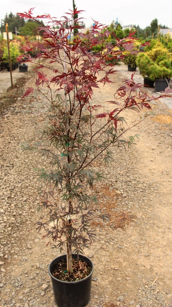 This item is grown and shipped in a standard trade #3 Container. The height of our potted plants may vary depending on their age and growth rate, so the actual size of the plant you receive might differ slightly from what is shown. For more details, please refer to our plant size policy on our store page. Acer palmatum 'Pung kil' is a unique and captivating Japanese Maple known for its elegant form and striking foliage. This ornamental tree features deeply lobed leaves that emerge in a vibrant shade of green in the spring, gradually transitioning to a brilliant mix of red, orange, and yellow in the fall, creating a stunning seasonal display. Growing at a moderate rate, 'Pung kil' typically reaches a height of 10-12 feet with a similar spread, forming a graceful, rounded canopy. Its finely textured foliage and beautiful color changes make it an excellent choice as a focal point in garden beds, borders, or as a standalone specimen in a landscape. This Japanese Maple thrives in partial shade to full sun, with the best color achieved in dappled sunlight. It prefers well-draining, slightly acidic soil and is well-suited to USDA hardiness zones 5-9. Regular watering, especially during dry periods, will help maintain its vibrant foliage and overall health. Mulching around the base of the tree helps retain soil moisture and protect the roots. 'Pung kil' is ideal for adding a touch of elegance and vibrant color to any garden. Its moderate size and stunning seasonal transformations make it a versatile and attractive addition to a variety of landscape designs, from traditional Japanese gardens to contemporary settings. Bring home Acer palmatum 'Pung kil' today and enjoy the timeless beauty and seasonal splendor it brings to your outdoor space.