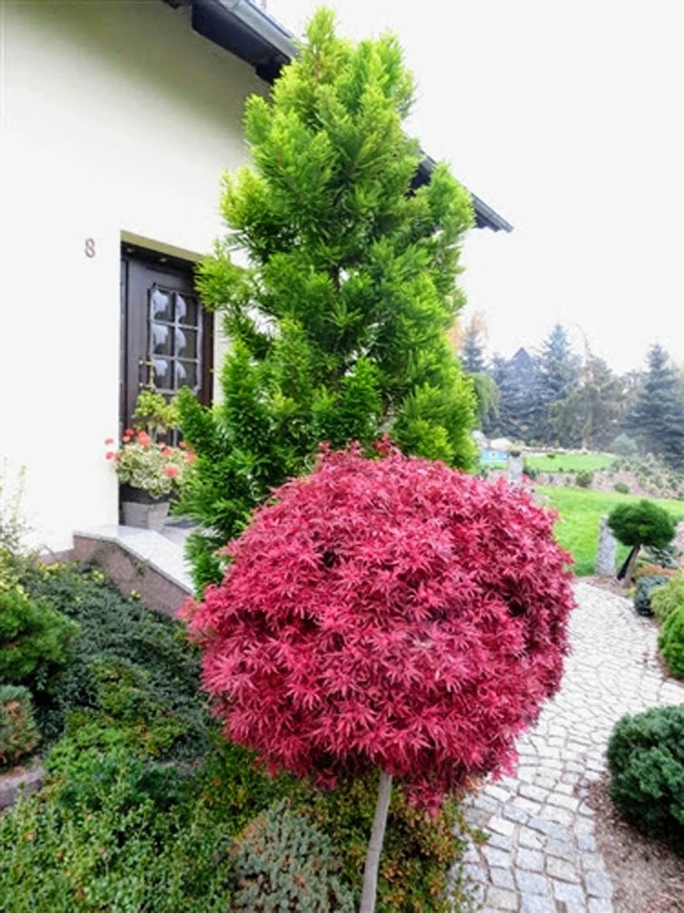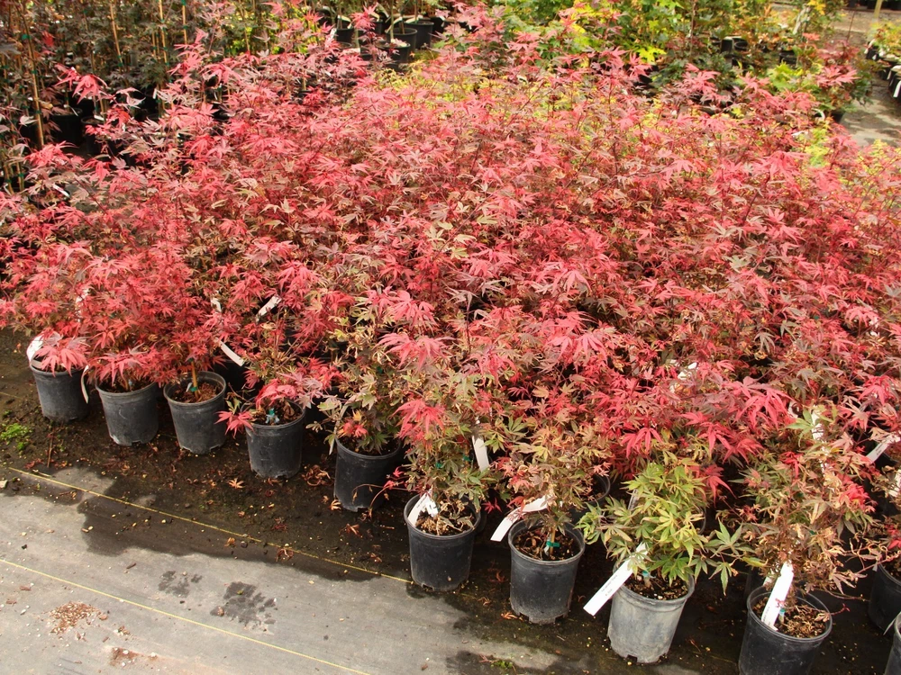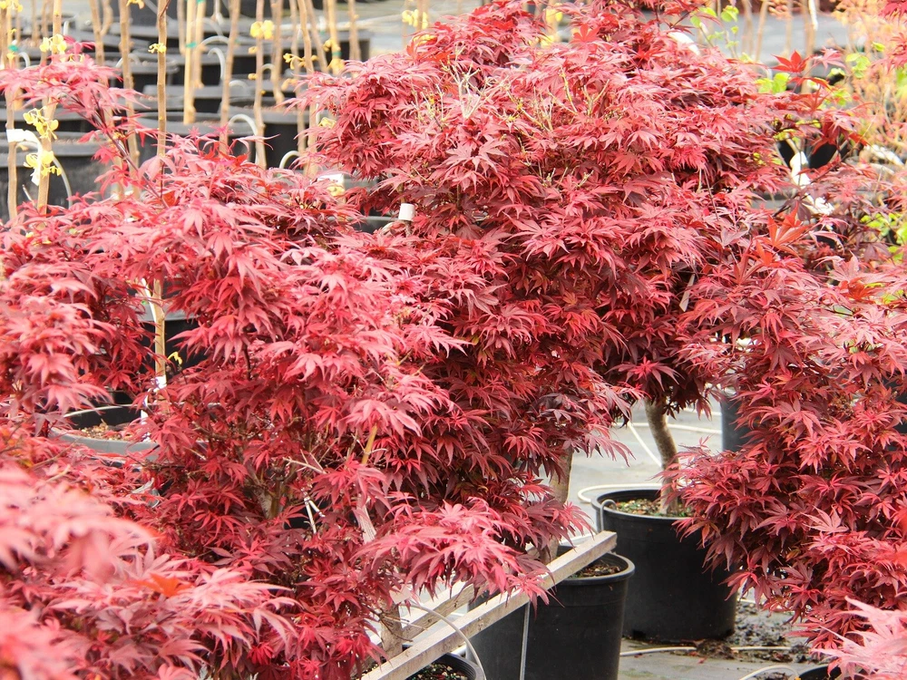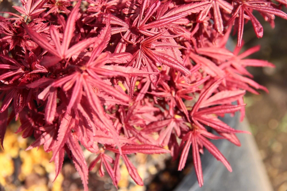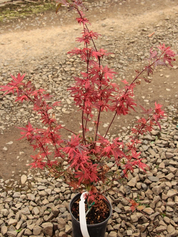 This item is grown and shipped in a standard trade #1 Container. The height of our potted plants may vary depending on their age and growth rate, so the actual size of the plant you receive might differ slightly from what is shown. For more details, please refer to our plant size policy on our store page. Acer palmatum 'Shaina' is a compact and stunning Japanese Maple that offers a brilliant display of color throughout the seasons. This dwarf variety is known for its dense, bushy growth and striking red foliage, making it an excellent choice for small gardens, patios, or as a focal point in mixed borders. 'Shaina' features deeply lobed, bright red leaves that emerge in the spring, darkening to a rich burgundy in summer, and then transitioning to a fiery red in the fall. Its compact, upright form reaches a height of about 4-6 feet with a similar spread, making it ideal for smaller spaces where a vibrant, eye-catching tree is desired. This Japanese Maple thrives in partial shade to full sun, performing best in well-draining, slightly acidic soil. It is well-suited to USDA hardiness zones 6-9 and appreciates regular watering, especially during dry periods. Mulching around the base helps retain moisture and protect the roots, ensuring the tree remains healthy and vibrant. 'Shaina' is perfect for those looking to add year-round interest and stunning color to their landscape. Its small size and brilliant foliage make it a versatile addition to a variety of garden styles, from traditional Japanese gardens to contemporary designs. Bring home Acer palmatum 'Shaina' today and enjoy the vibrant beauty and elegance it brings to your outdoor space.