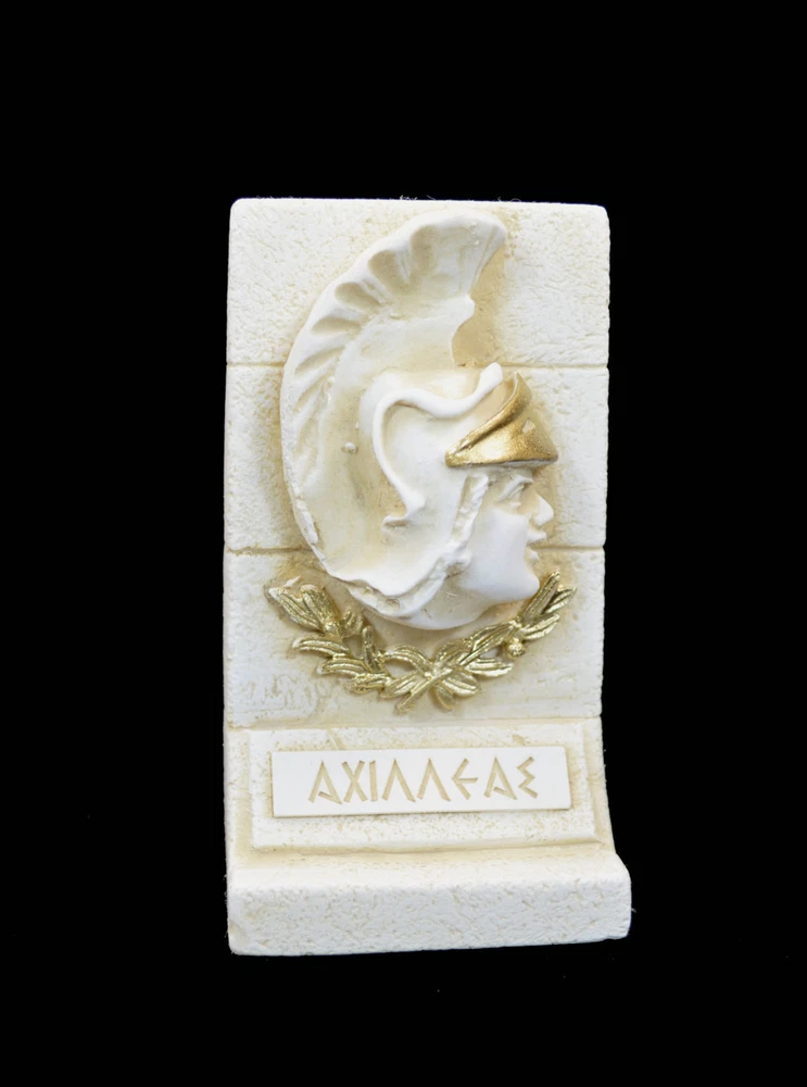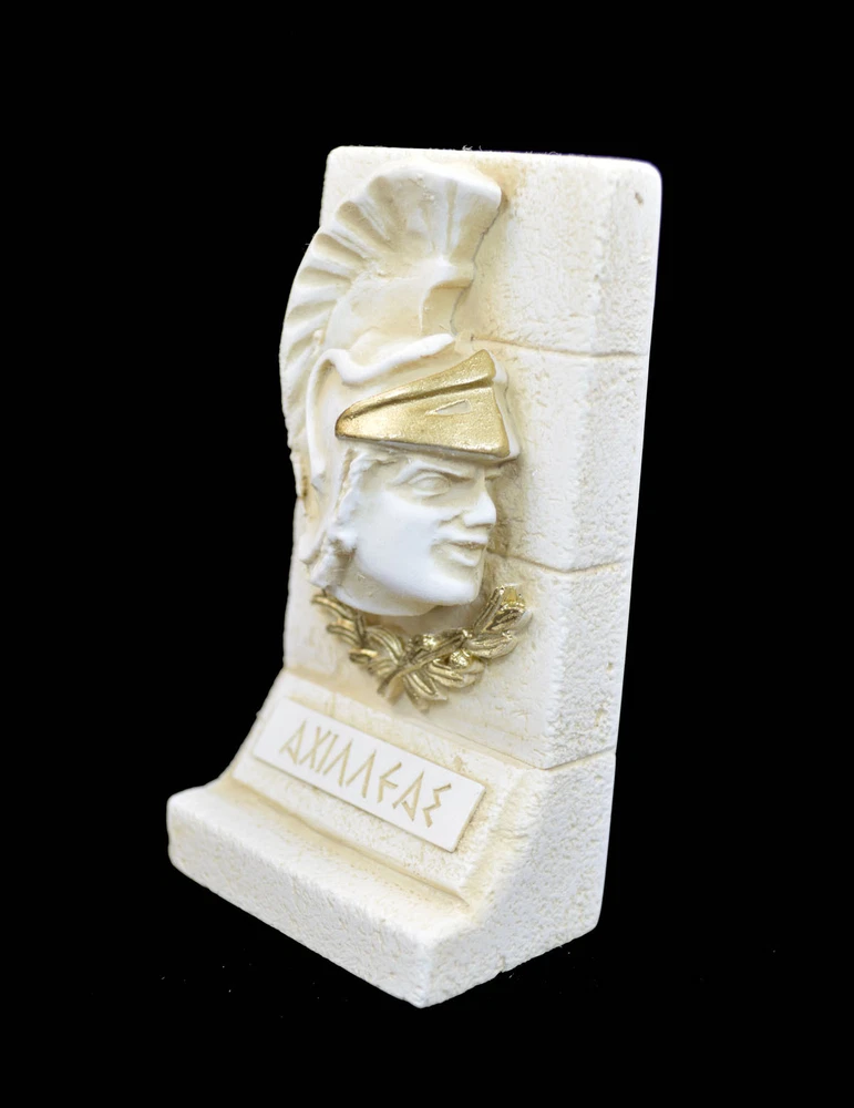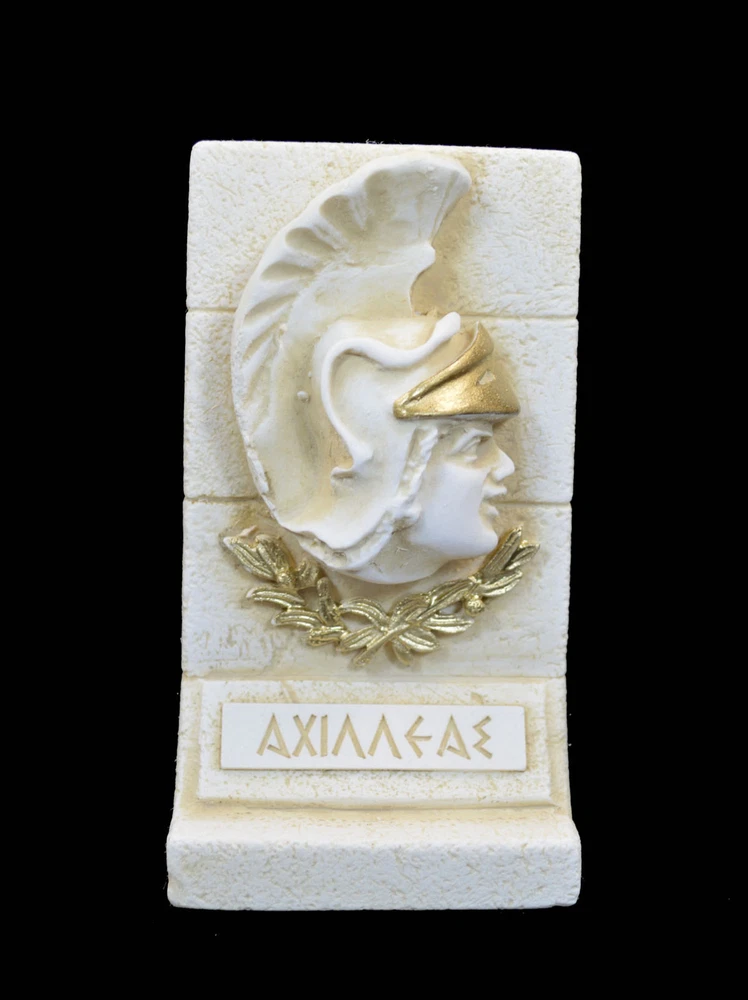 In Greek mythology, Achilles (Ancient Greek: Ἀχιλλεύς, Akhilleus, pronounced [akʰillěws]) was a Greek hero of the Trojan War and the central character and greatest warrior of Homer's Iliad. Achilles was said to be a demigod; his mother was the nymph Thetis, and his father, Peleus, was the king of the Myrmidons. Achilles’ most notable feat during the Trojan War was the slaying of the Trojan hero Hector outside the gates of Troy. Although the death of Achilles is not presented in the Iliad, other sources concur that he was killed near the end of the Trojan War by Paris, who shot him in the heel with an arrow. Later legends (beginning with a poem by Statius in the 1st century AD) state that Achilles was invulnerable in all of his body except for his heel. Because of his death from a small wound in the heel, the term Achilles' heel has come to mean a person's point of weakness. Achilles was the son of the nymph Thetis and Peleus, the king of the Myrmidons. Zeus and Poseidon had been rivals for the hand of Thetis until Prometheus, the fore-thinker, warned Zeus of a prophecy that Thetis would bear a son greater than his father. For this reason, the two gods withdrew their pursuit, and had her wed Peleus. There is a tale which offers an alternative version of these events: in Argonautica (iv.760) Zeus' sister and wife Hera alludes to Thetis' chaste resistance to the advances of Zeus, that Thetis was so loyal to Hera's marriage bond that she coolly rejected him. Thetis, although a daughter of the sea-god Nereus, was also brought up by Hera, further explaining her resistance to the advances of Zeus. According to the Achilleid, written by Statius in the 1st century AD, and to no surviving previous sources, when Achilles was born Thetis tried to make him immortal, by dipping him in the river Styx. However, he was left vulnerable at the part of the body by which she held him, his heel (see Achilles heel, Achilles' tendon). It is not clear if this version of events was known earlier. In another version of this story, Thetis anointed the boy in ambrosia and put him on top of a fire, to burn away the mortal parts of his body. She was interrupted by Peleus and abandoned both father and son in a rage. (03 00 016) Tracking number provided!!! Details: Condition: New, made in Greece. Approximately Height: 10cm - 3.9 inches Width : 6cm - 2.3 inches Weight: 220g Material: Alabaster patina aged ********