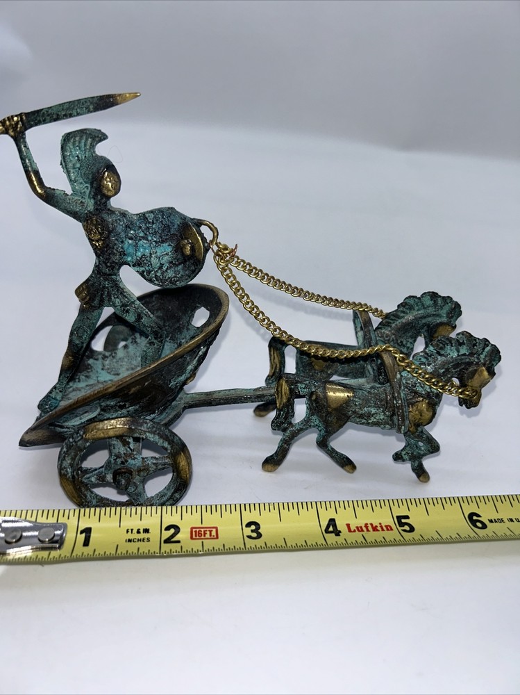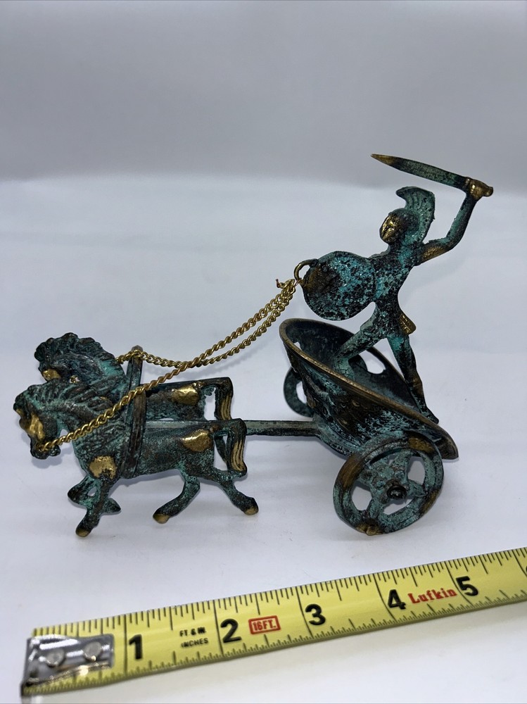 Achilles Mythology Greek Hero Trojan War On Chariot Bronze Statue Sculpture NICE Wheels and horses move Loc GC