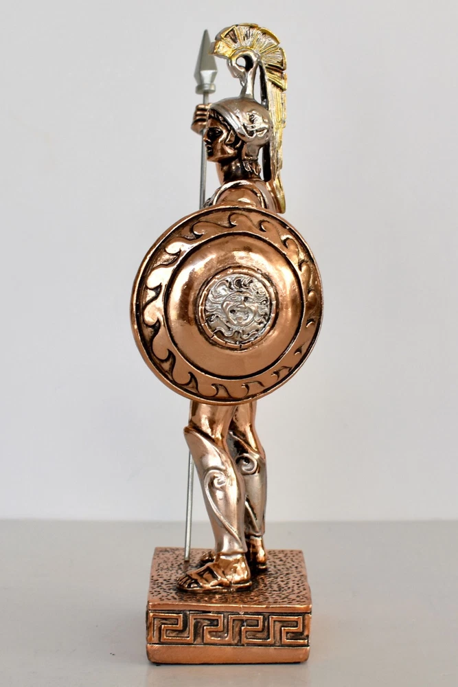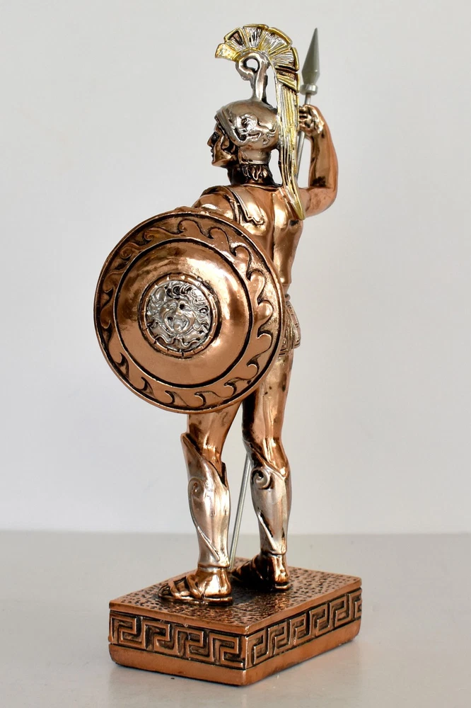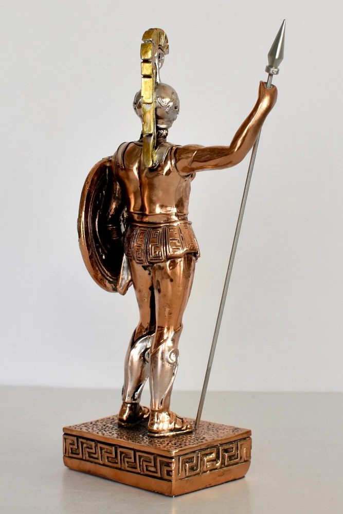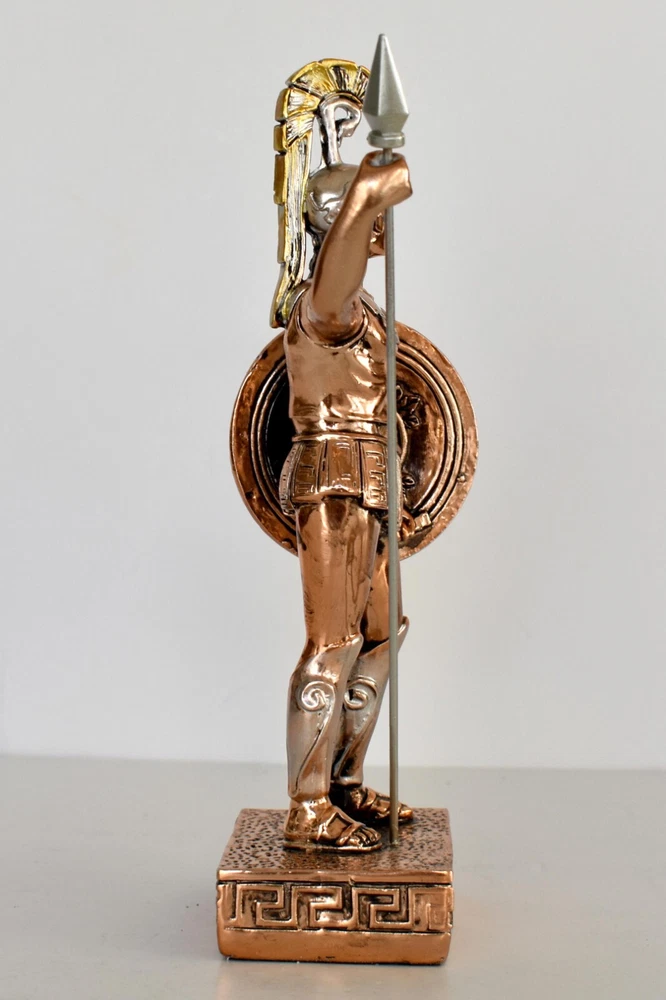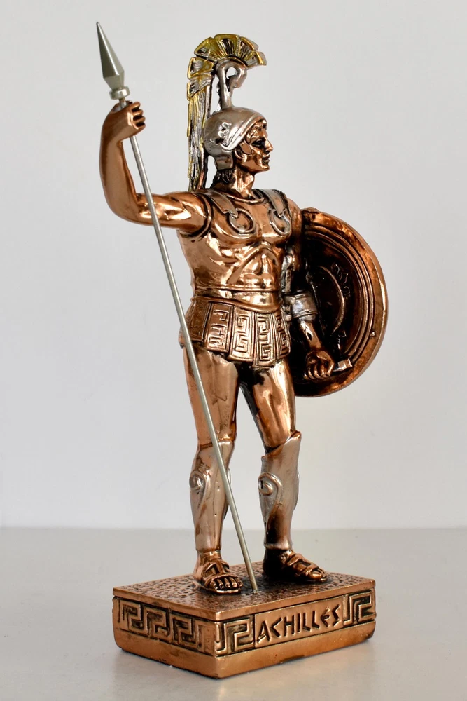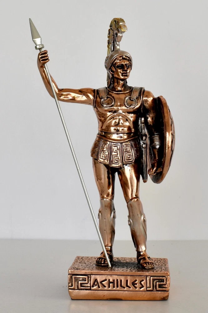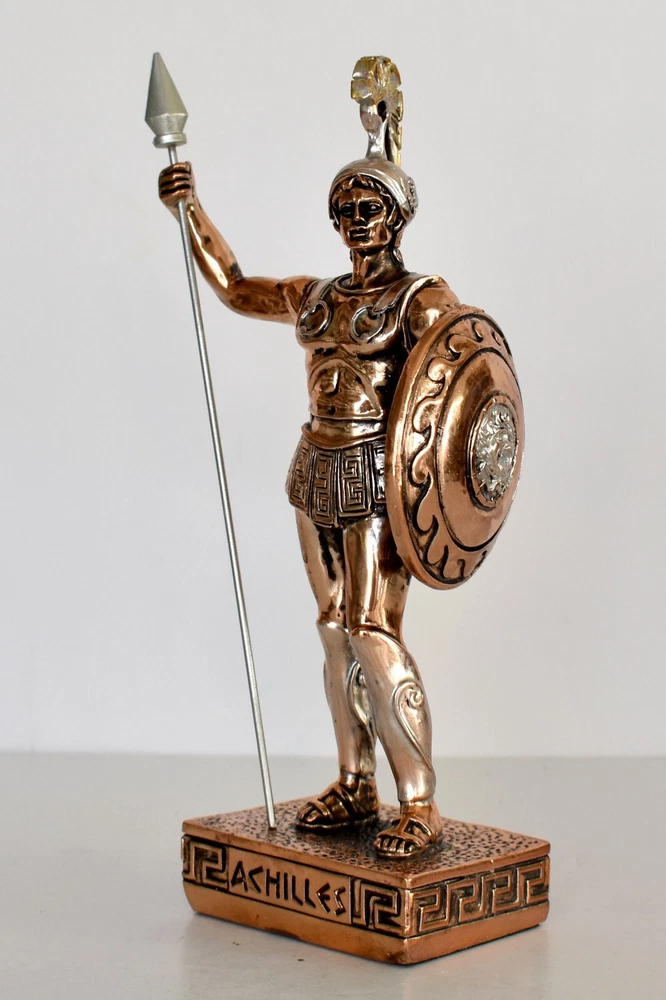 Achilles - King of the Myrmidons - Greek Hero - Son of Thetis and Peleus - Trojan War - Homer's Iliad - Copper Plated Alabaster Details: Condition: New Material: Copper Plated Alabaster Height: 19,5 cm - 7,7 inches Width: 9,5 cm - 3,7 inches Length: 5 cm - 2 inches Weight: 250 g In Greek mythology, Achilles was a hero of the Trojan War, the greatest of all the Greek warriors, and is the central character of Homer's Iliad. He was the son of the Nereid Thetis and Peleus, king of Phthia. Achilles' most notable feat during the Trojan War was the slaying of the Trojan prince Hector outside the gates of Troy. Although the death of Achilles is not presented in the Iliad, other sources concur that he was killed near the end of the Trojan War by Paris, who shot him in the heel with an arrow. Later legends (beginning with Statius' unfinished epic Achilleid, written in the 1st century AD) state that Achilles was invulnerable in all of his body except for one heel, because when his mother Thetis dipped him in the river Styx as an infant, she held him by one of his heels. Alluding to these legends, the term "Achilles' heel" has come to mean a point of weakness, especially in someone or something with an otherwise strong constitution. The Achilles tendon is also named after him due to these legends. RC 848 AXIΛΛΕΥΣ - 11 *********************