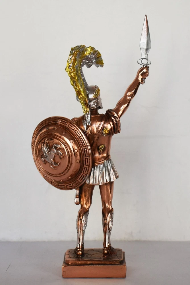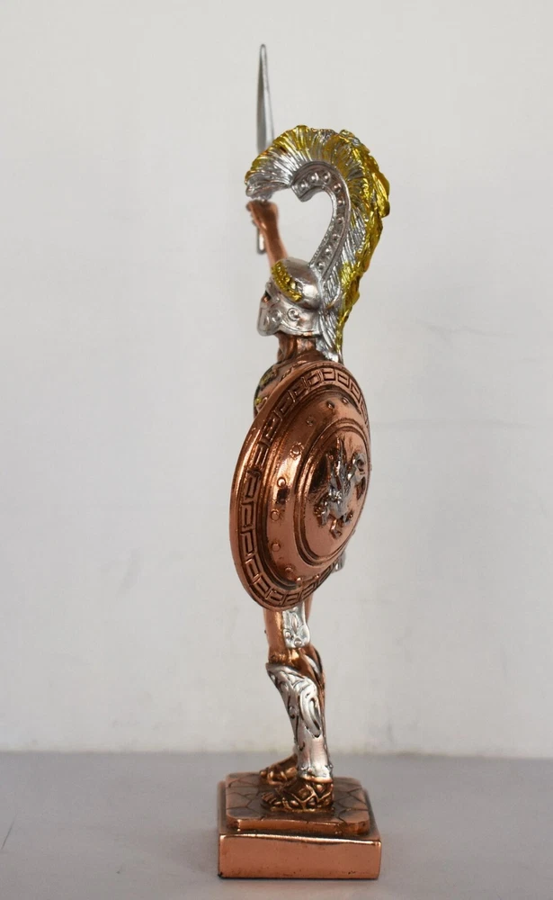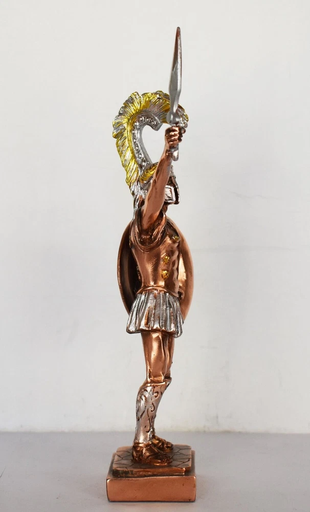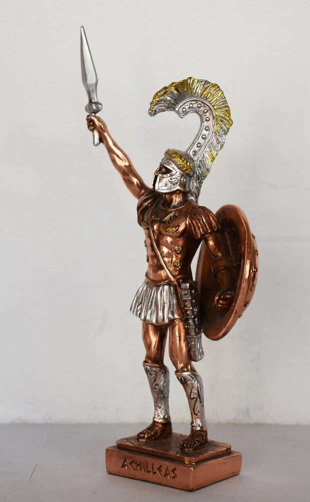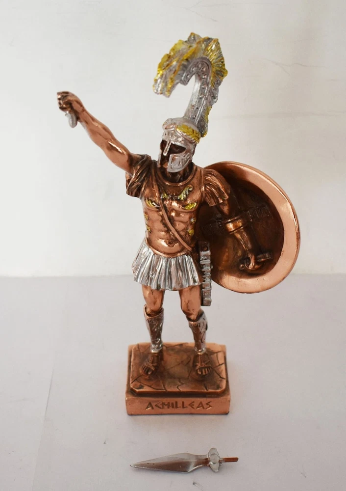 Achilles - King of the Myrmidons - Greek Hero - Son of Thetis and Peleus - Trojan War - Homer's Iliad - Copper Plated Alabaster Details: Condition: New Material: Copper Plated Alabaster Height: 19,5 cm - 7,7 inches Width: 10 cm - 3,9 inches Length: 4 cm - 1,6 inches Weight: 190 g In Greek mythology, Achilles was a hero of the Trojan War, the greatest of all the Greek warriors, and is the central character of Homer's Iliad. He was the son of the Nereid Thetis and Peleus, king of Phthia. Achilles' most notable feat during the Trojan War was the slaying of the Trojan prince Hector outside the gates of Troy. Although the death of Achilles is not presented in the Iliad, other sources concur that he was killed near the end of the Trojan War by Paris, who shot him in the heel with an arrow. Later legends (beginning with Statius' unfinished epic Achilleid, written in the 1st century AD) state that Achilles was invulnerable in all of his body except for one heel, because when his mother Thetis dipped him in the river Styx as an infant, she held him by one of his heels. Alluding to these legends, the term "Achilles' heel" has come to mean a point of weakness, especially in someone or something with an otherwise strong constitution. The Achilles tendon is also named after him due to these legends. RC 368 AXIΛΛΕΥΣ - 9,50 *********************