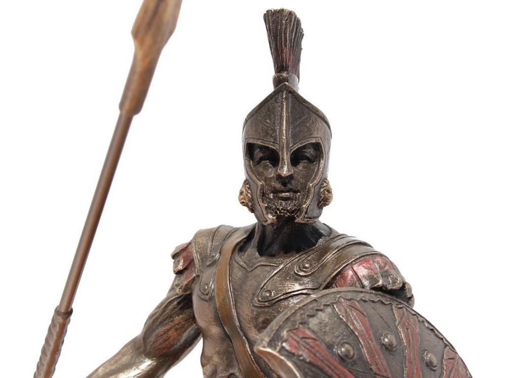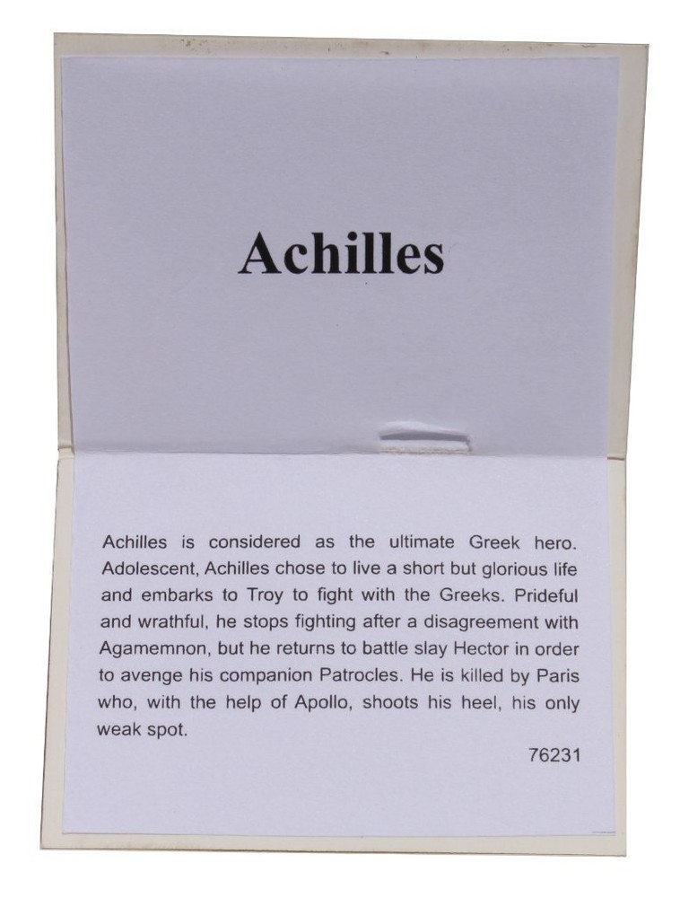 Achilles Greek Hero of the Trojan War Statue 9 Inch Tall Description In Greek mythology, Achilles was a Greek hero of the Trojan War and the central character and greatest warrior of Homer's Iliad. His mother was the nymph Thetis, and his father, Peleus, was the king of the Myrmidons. Features: Approximately 9 inches tall Made out of Cold Cast Resin and Bronze mixture Weight: 1.6 lb Artistically Sculpted Very Detailed and high quality Handling We will ship all orders within 2 - 3 business days of payment. Delivery We also ship outside of the Continental US. Feedback We take our reputation seriously, we buy and sell online, so we understand the value of trust. If you are unsatisfied with your order, please contact us and we will work with you to resolve it to your satisfaction.