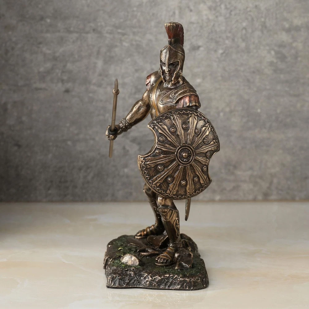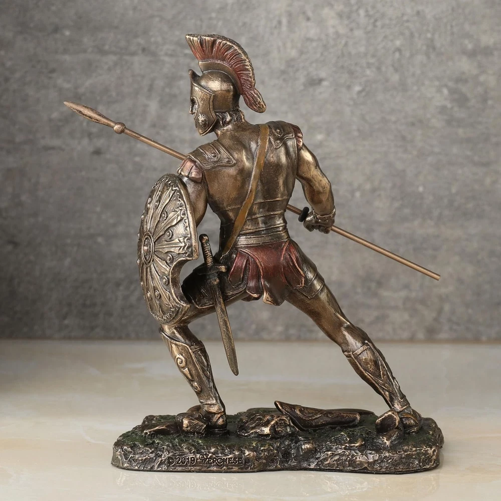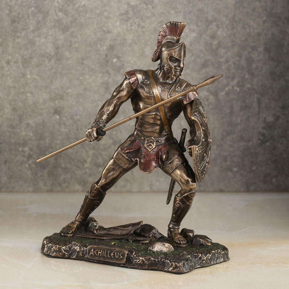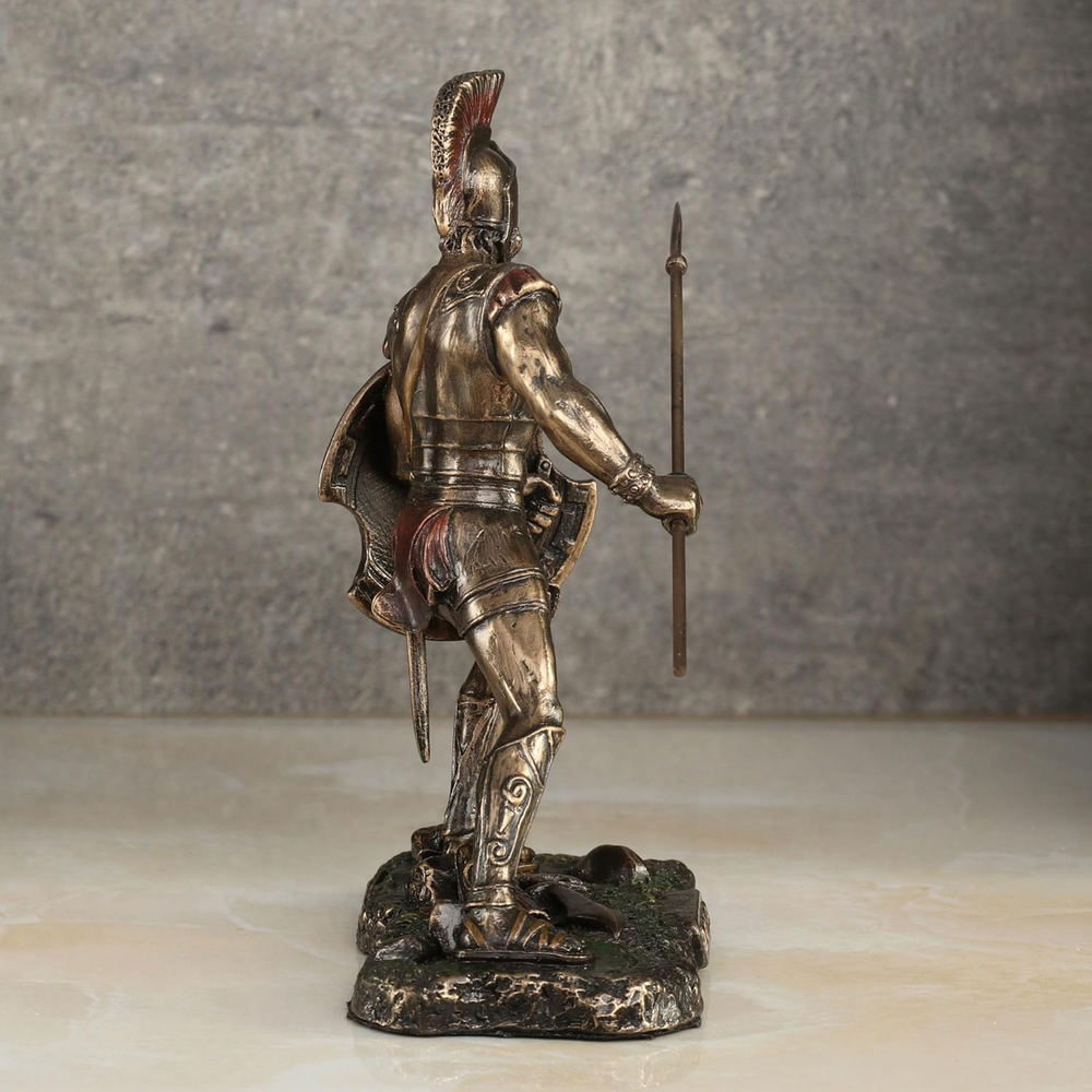 This statue is an amazing tribute to Achilles! The cold cast bronze gives it a strong, metallic look while keeping it lightweight. The red accents make the details pop, especially his armor and spear. Perfect size for display—richly detailed and feels like a premium collector’s piece. Love the dynamic pose—it captures the warrior's intensity beautifully. Highly recommend for history or Greek mythology fans! Feels sturdy and well-crafted. A great addition to any shelf.