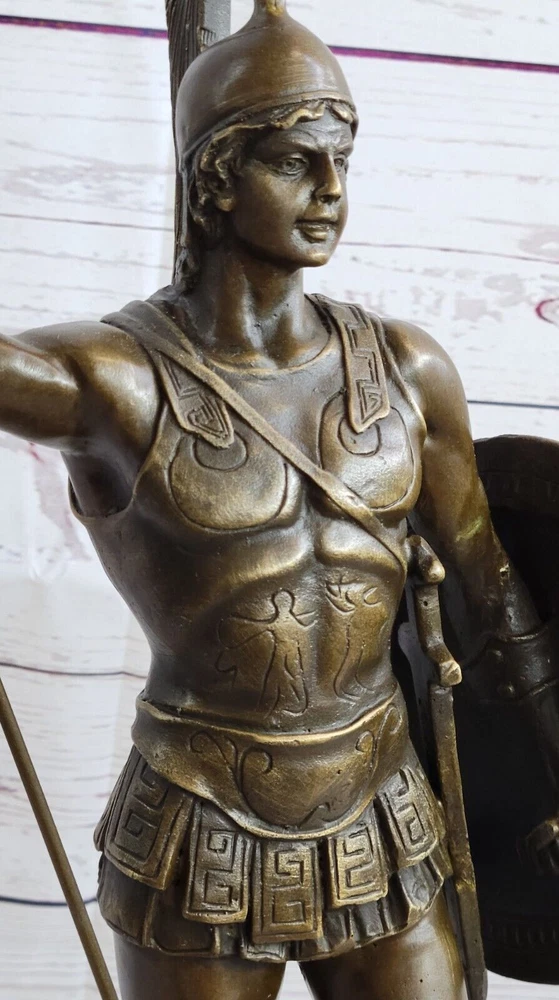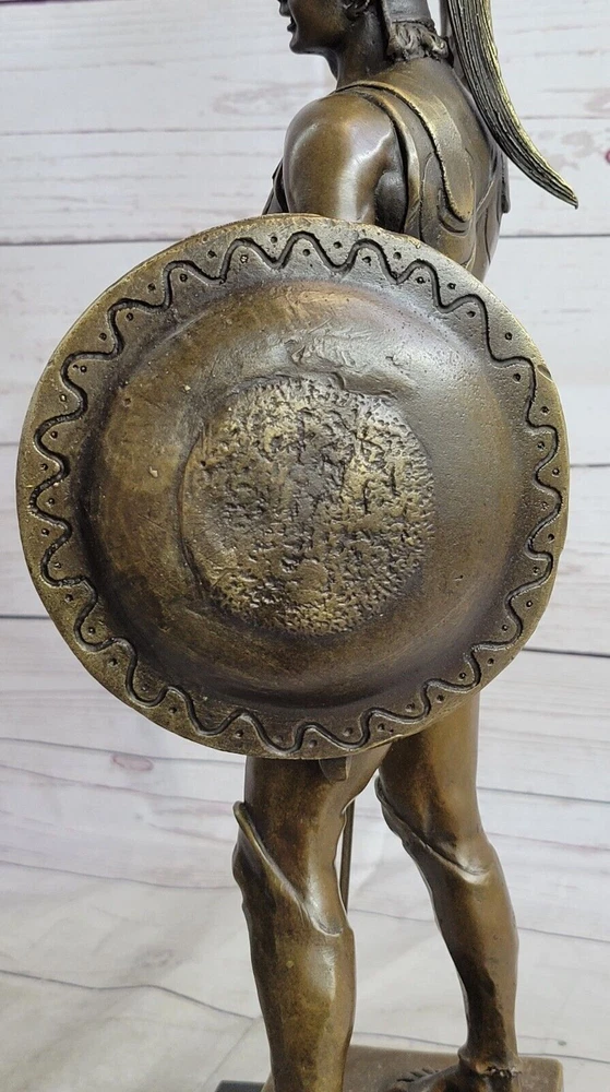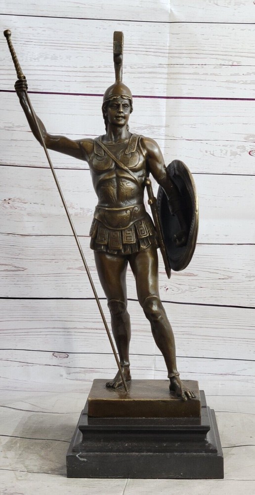 Achilles Greek hero of the Troyan War Bronze Statue 19.5"" on Marble Base sALE Achilles Greek hero of the Troyan War Bronze Statue 19.5"" on Marble Base sALE Condition: This sculpture is in perfect condition. Bronze Dimensions with Marble Base: Height 19.5" x Width 8 " Marble Dimensions: 6" X 6" Height without base: 16.5" Weight : 14 LBS Inventory : 45YRD11278054 This sculpture is in perfect condition. Bronze Dimensions with Marble Base: Height 19.5"" x Width 8 ""Marble Dimensions: 6"" X 6""Height without base: 16.5"" Weight : 14 LBSInventory : 45YRD11278054 German bronze figure modeled as the mythological warrior Achilles, dressed in Hoplite uniform including helmet, by J. Gotz (Johannes Gotz, German, 1865-1934), The bronze handmade sculpture was cast using the ancient method of lost-wax casting and stained with a brown patina finish for preservation. It is mounted upon a black variegated marble base with the artist J. Gotz signature. Shipping Terms : Most of our items are shipped via USPS (United States Postal Service) mail or UPS. Most orders are shipped within 24-48 hours of purchase. Please be aware that not all items are available for USPS shipping due to size and weight. We do ship to Hawaii, Alaska, Canada, Puerto Rico, APO/AE, and U.S. Virgin Islands, however, an additional charge may be required. Please contact us before making any purchases in these areas. For Non-USA customers, you may be responsible for all duty, tax, brokerage fees that may be due upon delivery (shipping costs cover freight charges only). We also ship internationally. Please refer to the "Shipping and Handling" chart for the rates for each area. Payment : We accept just about any form of payment. PayPal, Master Card, Visa or American Express credit cards. Money orders, cashiers checks, and even personal or business checks. For governmental institutions, we will also accept a purchase order. Please understand that for personal or business checks we have to wait for the check to clear (usually 7 days) before shipping. Condition : New Detailed Hand Crafted Hot Cast Bronze ~Not Resin~ Satisfaction Guaranteed. This is Stock Photo, Slight Color Variation!! Listing and template services provided by inkFrog