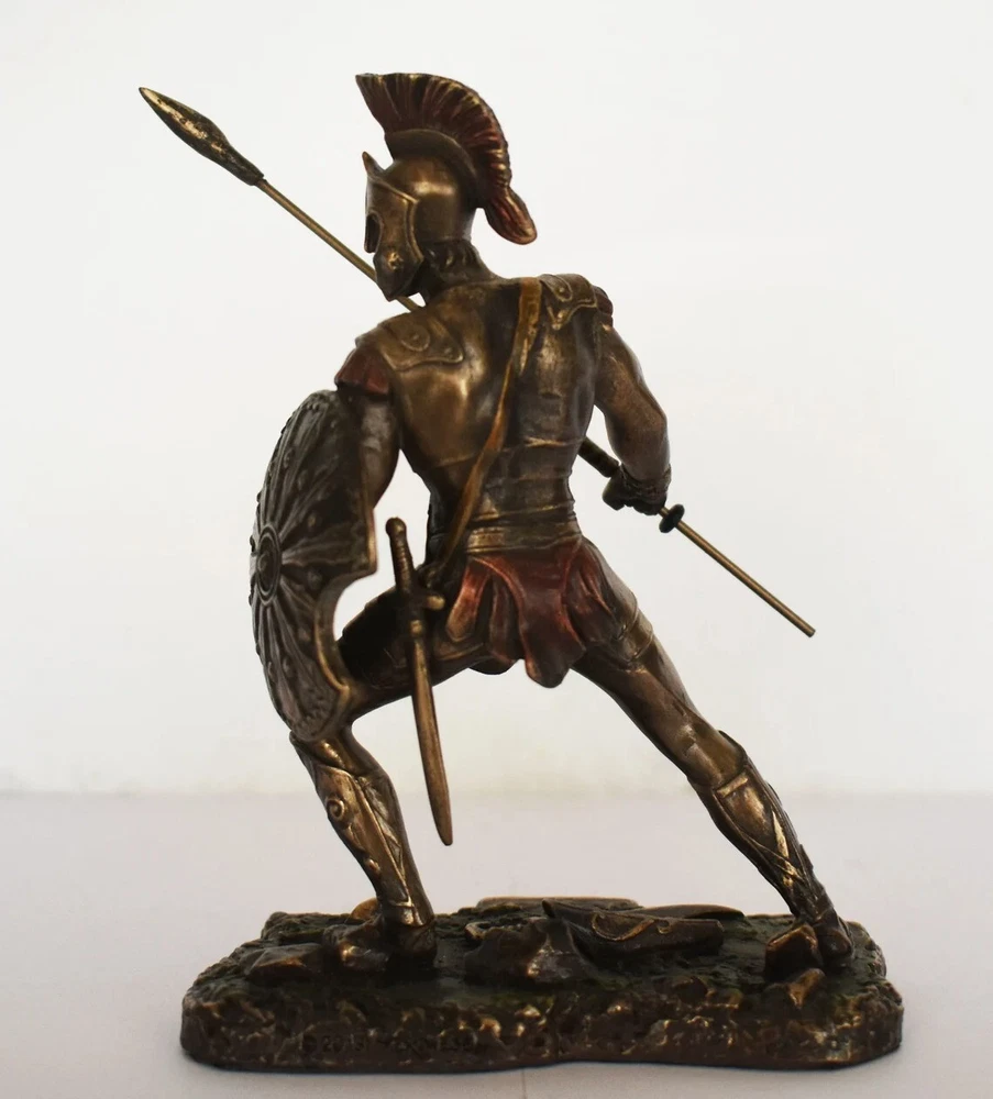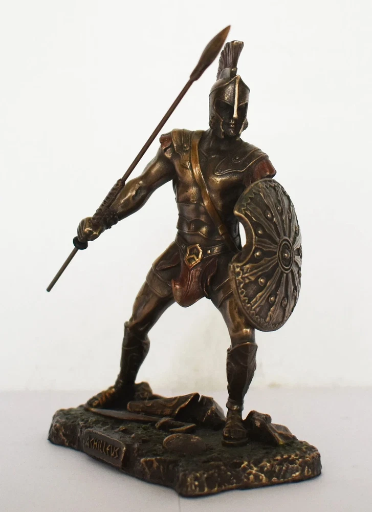 Achilles - King of the Myrmidons - Greek Hero - Son of Thetis and Peleus - Trojan War - Homer's Iliad - Cold Cast Bronze Resin Condition: New Material: Cold Cast Bronze Resin Height: 13 cm - 5,1 inches Width: 9,5 cm - 3,7 inches Length: 5 cm - 2 inches Weight: 150 g In Greek mythology, Achilles was a hero of the Trojan War, the greatest of all the Greek warriors, and is the central character of Homer's Iliad. He was the son of the Nereid Thetis and Peleus, king of Phthia. Achilles' most notable feat during the Trojan War was the slaying of the Trojan prince Hector outside the gates of Troy. Although the death of Achilles is not presented in the Iliad, other sources concur that he was killed near the end of the Trojan War by Paris, who shot him in the heel with an arrow. Later legends (beginning with Statius' unfinished epic Achilleid, written in the 1st century AD) state that Achilles was invulnerable in all of his body except for one heel, because when his mother Thetis dipped him in the river Styx as an infant, she held him by one of his heels. Alluding to these legends, the term "Achilles' heel" has come to mean a point of weakness, especially in someone or something with an otherwise strong constitution. The Achilles tendon is also named after him due to these legends. GRI 145-02727A4 ΑΧΙΛΛΕΥΣ 12,5 ΕΚ - 20 *********************