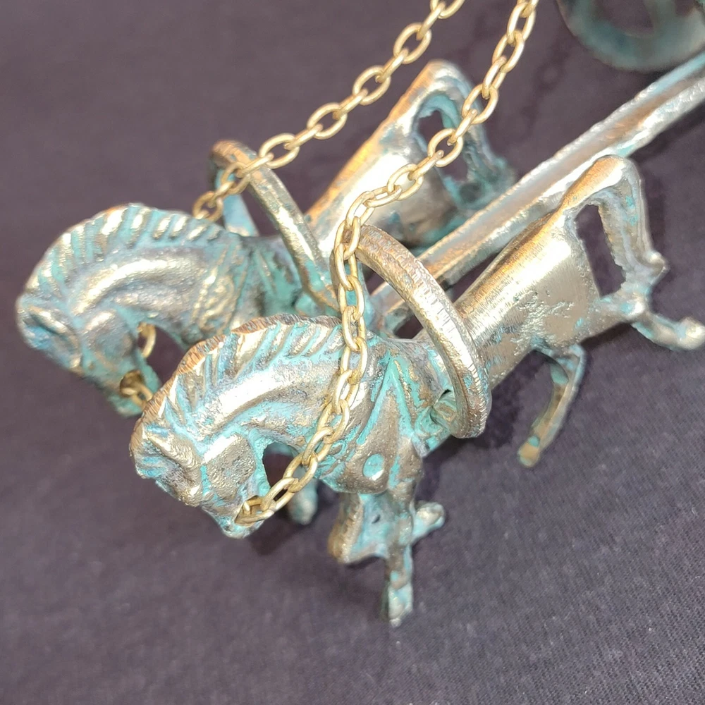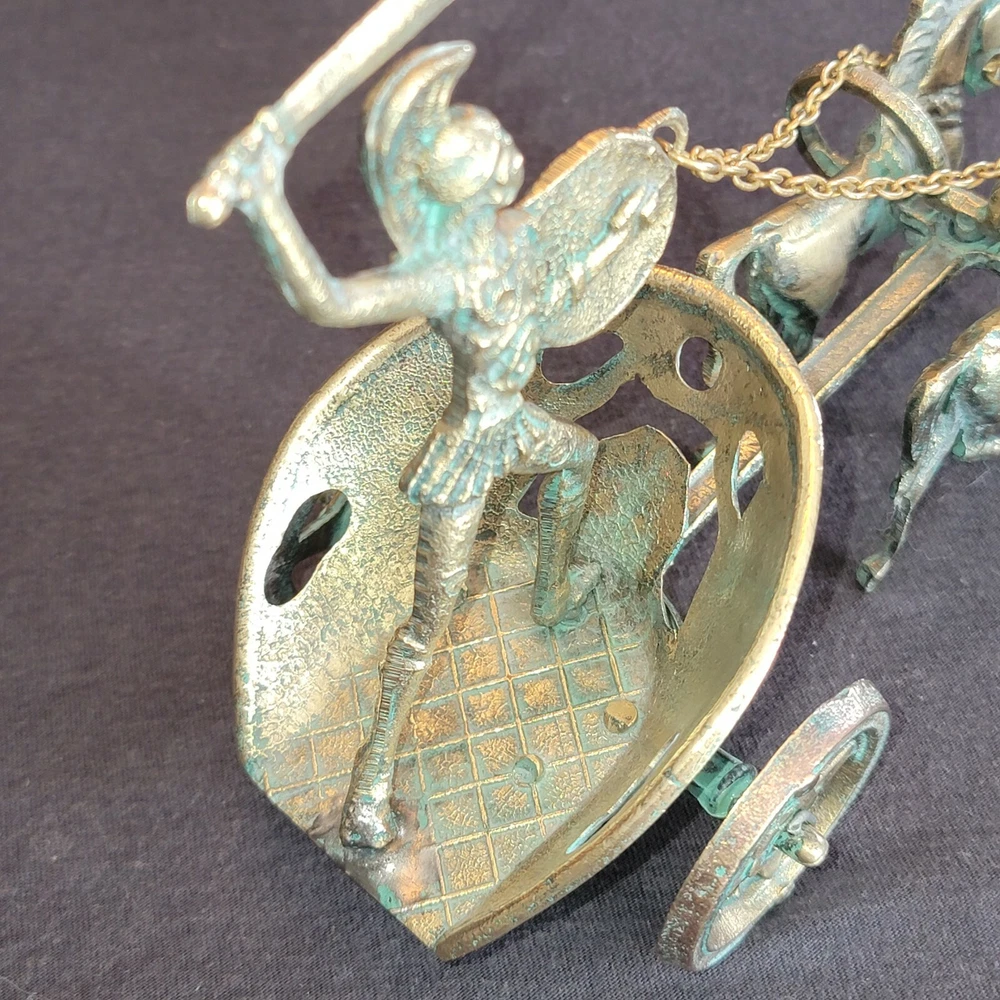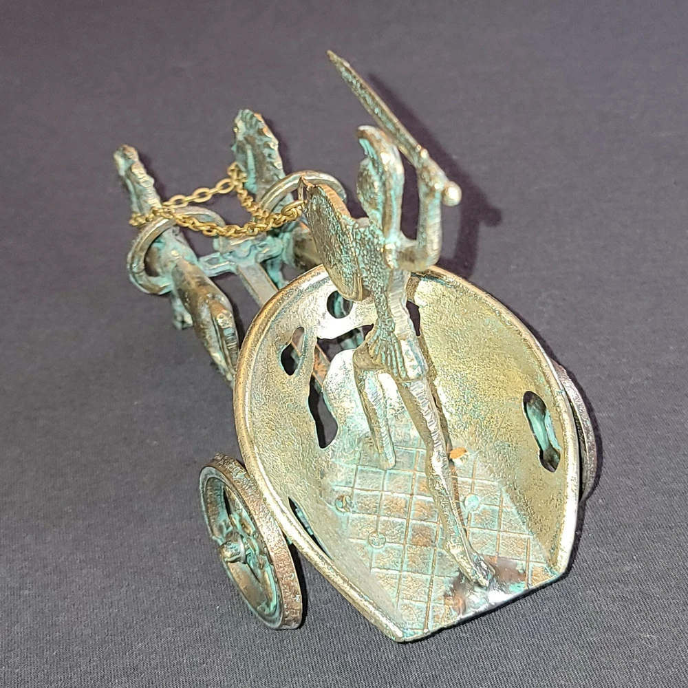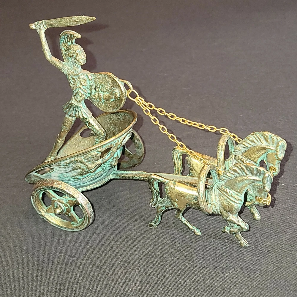 Achilles Mythology Greek Hero Trojan War On Chariot Bronze Statue Sculpture. Very Nice Condition. Shipped with USPS Priority Mail. Handmade with Highest Quality and Aesthetics !!! Bronze Statue of Achilles, Greek Hero of the Trojian War, on a Two-Horse Chariot Medium: Solid Bronze Color: Bronze/ Brass Color with Green oxidation Size : 20cm x 11cm x 13cm / 7.9"x 4.3" x 5.1" Weight: 1 lb .04 oz. (Please note that the size or weight of the statue may differ slightly as they are all Handmade.) In Greek Mythology, Achilles was a Greek hero of the Trojan War and the central character and greatest warrior of Homer's Iliad. Achilles’ most notable feat during the Trojan War was the slaying of the Trojan hero Hector outside the gates of Troy. Although the death of Achilles is not presented in the Iliad, other sources concur that he was killed near the end of the Trojan War, by Paris, who shot him in the heel with an arrow. Later legends state that Achilles was invulnerable in all of his body except for his heel. Alluding to these legends, the term "Achilles heel" has come to mean a point of weakness, especially in someone or something with a strong constitution .