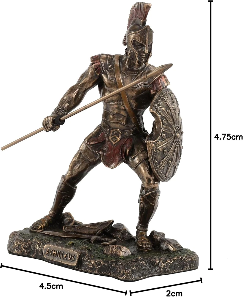 Achilles Rage Trojan War Hero Achilleus Holding Spear and Shield Statue Compact Size - Measuring 4.75 inches high, 4.5 inches long, and 2 inches wide, this statue is ideal for desktops, shelves, or display cases Premium Bronze Finish - Crafted from cold-cast bronze, this statue offers a lustrous and durable finish, perfect for display in any setting Detailed Design - Features intricate detailing from the helmet crest to the ornate scroll-work on the armor, showcasing exceptional craftsmanship Red Accents - The headpiece and clothing are highlighted with a red tint, accentuating Achilles' fierce and legendary fury Perfect Gift For Collectors - A thoughtful present for mythology enthusiasts and collectors, capturing the might and heroism of the Trojan War icon Sing, Goddess, of the rage of Peleus` son Achilles...the powerful Greek hero holds his shield before him and his spear is ready as he rages toward the enemy in this symbolic statue that exudes the power and great strength of this almost invulnerable fighter. Made of cold-cast bronze, this statue features a lustrous bronze finish while his headpiece and clothing have a red tint that accentuates Achilles` fury and might. The 4.75-inch high, 4.5-inch long, 2-inch wide Achilles statue has been beautifully sculpted from the crest atop his helmet to the ornate scroll-work on his armor. This is one statue that is certain to be admired and would make a wonderful gift for any mythological collector. Item Weight 4 ounces Item model number WU77539A4 Product Dimensions 4.5 x 2 x 4.75 inches Shipping Fast shipping is very important for us. Our standard US shipping service is FREE. Your order will be shipped within 2-3 business days upon full payment received. Your order will be delivered within 2-3 business days after the handling time. We only ship to the confirmed PayPal address. We reserve the right to cancel any order for any reason at any time. We are not responsible for undeliverable addresses. Returns and payment We offer a 30 days return policy from checkout winning date. We allow only PayPal as payment method FeedBack Your feedback very important to us, after you get your package and you are satisfied with our service please leave us positive feedback If you have any problem with your order / any questions please before leave any type of feedback For any questions, using eBay contact system Please visit our eBay store to check out other items for sale! Thank you for shopping at our store.