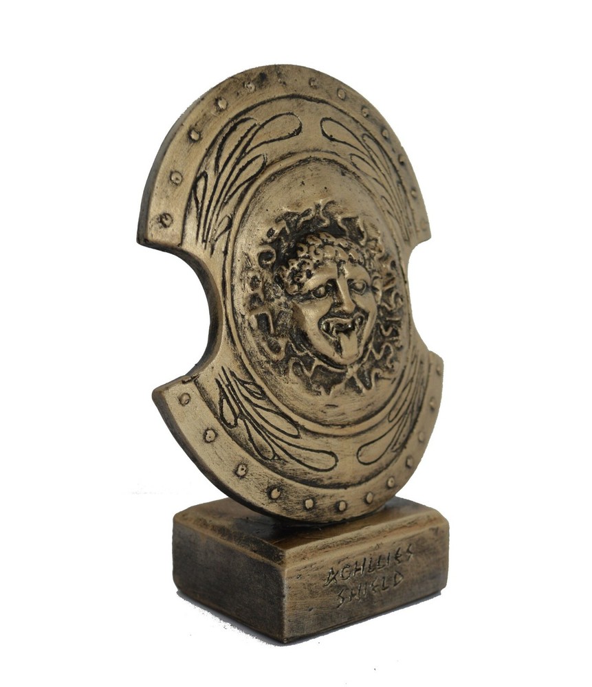 This sculpture is made of casting stone with bronze effect colour! ANCIENT GREEK ACHILLES SHIELD Condition: New, made in Greece. Approximately Height: 14 cm - 5.5 inches Width: 9.5cm - 3.7 inches Weight: 200 g In Greek mythology, Achilles was a Greek hero of the Trojan War and the central character and greatest warrior of Homer's Iliad. His mother was the nymph Thetis, and his father, Peleus, was the king of the Myrmidons. Achilles’ most notable feat during the Trojan War was the slaying of the Trojan hero Hector outside the gates of Troy. Although the death of Achilles is not presented in the Iliad, other sources concur that he was killed near the end of the Trojan War by Paris, who shot him in the heel with an arrow. Later legends (beginning with a poem by Statius in the 1st century AD) state that Achilles was invulnerable in all of his body except for his heel. Because of his death from a small wound in the heel, the term Achilles' heel has come to mean a person's point of weakness. (B55) In Greek religion and mythology, Owl is a great symbol of knowledge, wisdom, perspicacity and erudition. Tracking number provided!!! Please be aware that, due to the fact that our products are either individually cast, carved, hand painted and hand finished, there will inevitably be minor variations in size, colour and texture.