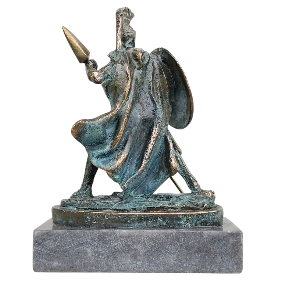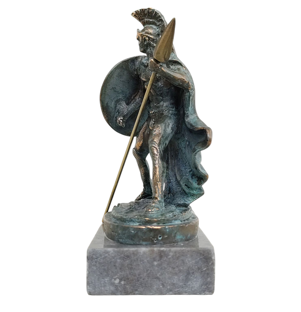 Achilles Greek Warrior of Trojan War Bronze Statue with Marble Base 5.51 Inches (14cm) Height: 5,51 inches (14cm) Width: 3,94 inches (10 cm) Depth 2,17 inches (5.5cm) Weight: 1.91 lbs (865g) Material: Bronze Achilles, in Greek mythology, son of the mortal Peleus, king of the Myrmidons, and the Nereid, or sea nymph, Thetis. Achilles was the bravest, handsomest, and greatest warrior of the army of Agamemnon in the Trojan War. According to Homer, Achilles was brought up by his mother at Phthia with his inseparable companion Patroclus. Later non-Homeric tales suggest that Patroclus was Achilles’ kinsman or lover. Another non-Homeric episode relates that Thetis dipped Achilles as a child in the waters of the River Styx, by which means he became invulnerable, except for the part of his heel by which she held him—the proverbial “Achilles’ heel.” The later mythographers related that Peleus, having received an oracle that his son would die fighting at Troy, sent Achilles to the court of Lycomedes on Scyros, where he was dressed as a girl and kept among the king’s daughters (one of whom, Deïdamia, bore him Neoptolemus). Hearing from the soothsayer Calchas that Troy could not be taken without Achilles, the Greeks searched for and found him. Terms of Sale Return Policy Customers must inspect item(s) and notify us within 14 days of any problems. If you have a problem with your item please contact us before leaving feedback. Returns are accepted, the buyer must pay my initial shipping cost and also pay for the return shipping cost. Items must be returned in the exact same condition that they were shipped out in. I don't do returns based on size/colour and failure to read my item description and review pictures. Warranty No manufacturer's warranty should be expected unless stated in description Terms & Conditions By paying for this item you acknowledge you reviewed all the pictures/description are satisfied with the condition and any other feature the item has, if you have any questions about the item, size color ext, message me prior to purchasing. Only what is in the pictures is included, nothing else, don't assume anything. If cables, accessories or anything else isn't pictured then there not included. If you are dissatisfied for any reason, please don't be quick to leave negative/neutral feedback I'll do my best to work things out if there is a problem with your purchase. If you are satisfied with the product and service, please leave positive feedback. Thanks for looking, check out my other eBay listings. Be sure to click Follow This Seller if your interested in more items like this. Our shipments are processed within 1 business day of cleared payment. (excluding holidays) Thanks for looking! View more great items