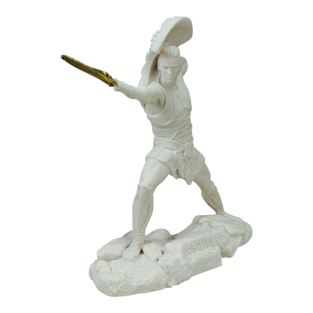 Achilles – Greek Hero of the Trojan War Cast Marble | Handmade in Greece 🇬🇷 | Battle Stance Sculpture | White Color 🛡️ Mythology & Symbolism Achilles , the fearless warrior and central hero of the Trojan War, is immortalized in this striking statue. Known for his unmatched valor and strength, Achilles led the Greek army to countless victories. His legacy is one of honor, glory, and tragic fate . This sculpture captures Achilles in a dynamic battle-ready stance , sword in hand, embodying the spirit of heroism and Greek martial excellence. 📐 Dimensions (Approx.): Height: 17 cm (6.70 in) Width (with Sword): 20 cm (7.90 in) Depth: 5 cm (1.95 in) Weight: 300 g (0.66 lb) ⚒️ Material & Craftsmanship Crafted using the Cast Marble technique , this statue is made from over 90% natural crushed Greek marble combined with a small amount of resin to ensure durability and detail. Each piece is poured into a detailed mold and then hand-finished by Greek artisans to ensure precision and authenticity. The result is a strong, elegant sculpture that mimics real marble in both appearance and texture. This is a cast reproduction, not a hand-carved piece. Minor surface variations may occur as part of the handcrafted process. These variations add to the uniqueness and charm of each piece. Bring the spirit of legendary Greek valor to your home or office with this exceptional representation of Achilles. ⚔️🏛️ 🛒 Discover More Classical Sculptures in Our Store