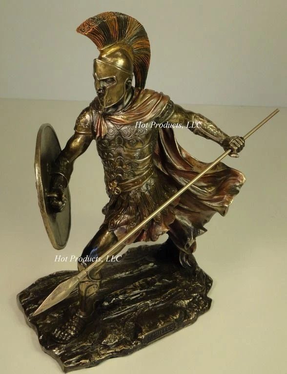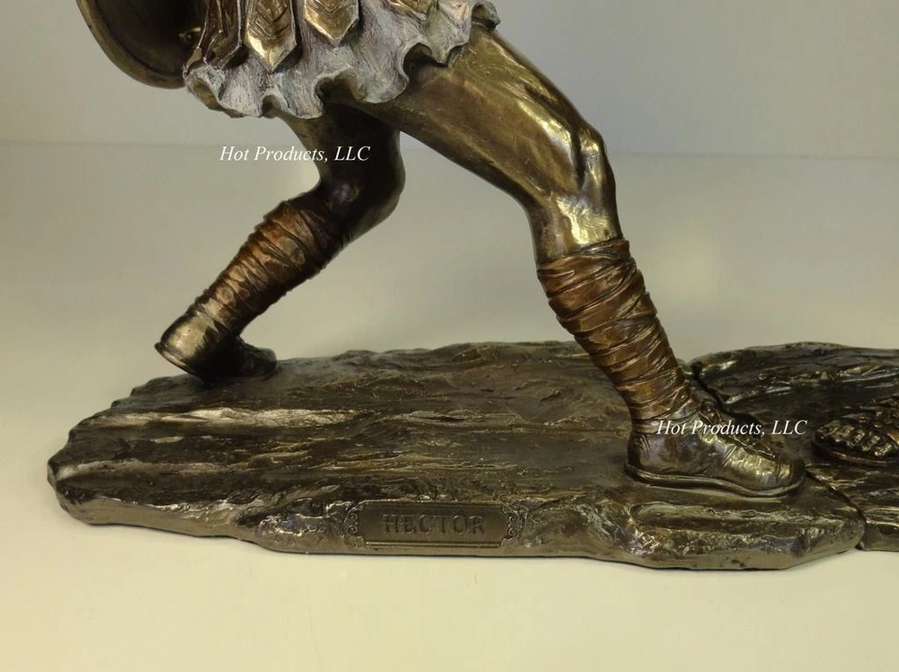 Brand new statue is expertly cast in a bronzed resin. The superb detailing and hand painted accents really bring this statue to life. Great addition you anyone’s décor. Brand: Veronese Design Dimensions Achilles: 11.5" High x 4" x 7.5" Dimensions Hector: 11.5" (to sword tip) x 4" x 7.5" Height: 10" (top of plume) Listing and template services provided by inkFrog
