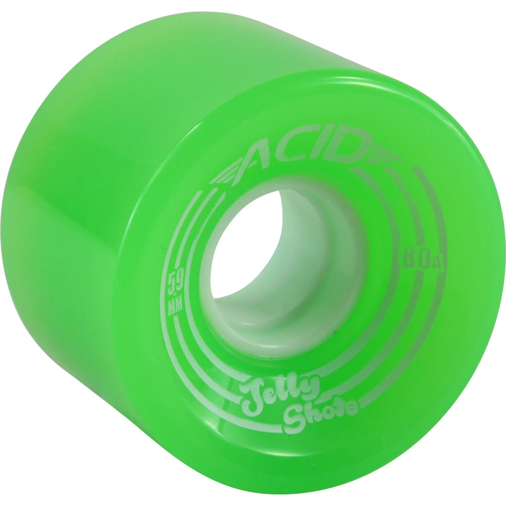 Acid Chemical Wheels Jelly Shots Skateboard Wheels These brand new Acid Chemical Wheels wheels are built to last! Coming in at 59mm in diameter and 80a in hardness, these bad boys are ready for action and packed with steez. Acid Chemical Wheels Jelly Shots Skateboard Wheels are sold in (1) set of four (4) wheels. You know, because that's how many wheels you need on a skateboard. Speaking of skateboards, did you know that Warehouse Skateboards sells those too? We're not all wheels, and there's plenty of wood to go around. Note: Bearings not included. Features: One (1) set of 59mm Acid Chemical Wheels Jelly Shots Skateboard Wheels; includes four (4) wheels Diameter: 59mm Durometer: 80a Color: Green