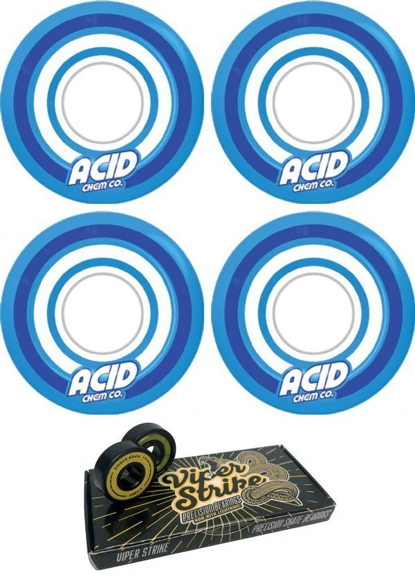 53mm Acid Chemical Wheels Pods Conical Navy Skateboard Wheels - 86a + Viper Strike Skateboard Bearings 8mm Precision ABEC 7 Skateboard Bearings These brand new Acid Chemical Wheels wheels are high-quality and made to last. They measure 53mm in diameter and 86a in hardness, and will provide a smooth ride. Features: One (1) set of 53mm 86a Acid Chemical Wheels Pods Conical Navy Skateboard Wheels - 86a (4 wheels total) One (1) box of Viper Strike Skateboard Bearings 8mm Precision ABEC 7 Skateboard Bearings (8 bearings total) Note: Bearings are not installed in wheels. Once installed, product cannot be returned or exchanged.