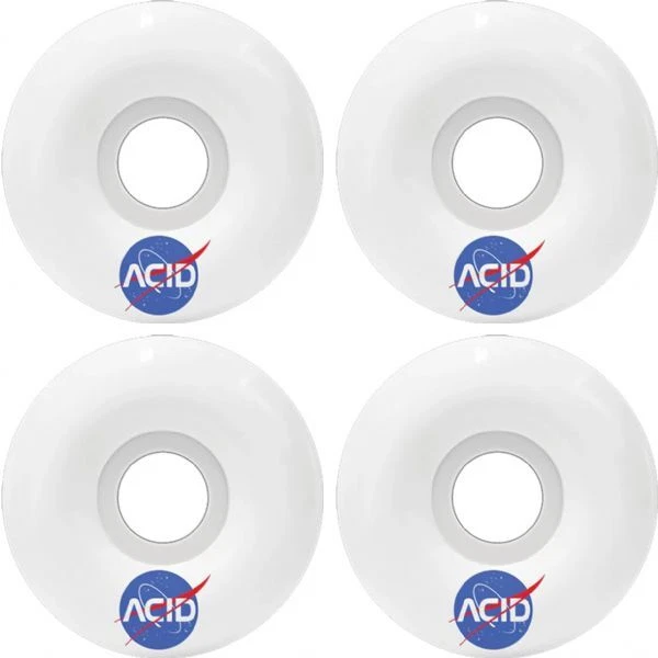 Acid Chemical Wheels Type A Space Skateboard Wheels These brand new Acid Chemical Wheels wheels are built to last! Coming in at 52mm in diameter and 101a in hardness, these bad boys are ready for action and packed with steez. Acid Chemical Wheels Type A Space Skateboard Wheels are sold in (1) set of four (4) wheels. You know, because that's how many wheels you need on a skateboard. Speaking of skateboards, did you know that Warehouse Skateboards sells those too? We're not all wheels, and there's plenty of wood to go around. Note: Bearings not included. Features: One (1) set of 52mm Acid Chemical Wheels Type A Space Skateboard Wheels; includes four (4) wheels Diameter: 52mm Durometer: 101a Color: White