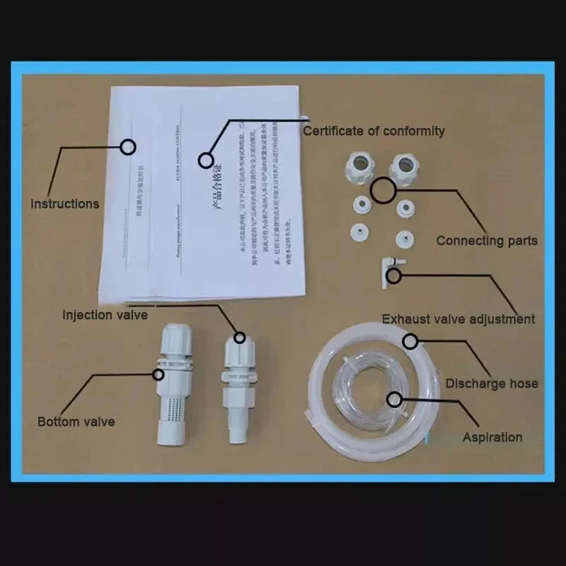 220V Acid Chlorine Chemical Dosing Pump Electronic Metering Pump for Swimming Pool 1L/Hour This Metering Pump only have 220V/50Hz, Please pay attention about the voltage. * NEW Acid Chlorine Chemical Dosing Pump Electronic Metering Pump for Swimming Pool Automatic Electromagnetic * Dosing Equipment * It is mainly used in Disinfection and chlorination of water treatment, RO systermboiler antiscalant , car wash industrial automatic detergent dosage, Aquarium &Swimming pool chlorine automatic dosage, Air conditioning circulating water treatment, Ice machine industryetc. The product quality is stable. Advantages Compatible PVDF pump head and ceramic ball valve standard--- Full Chemcial Compatibility Made of pure solid PTFE, the diaphragm is compatible with most chemcial. Compatible PVDF pump head and ceramic ball valve standard---Full Chemcial Compatibility 1. PVDF is suitable for almost all chemcial used in the industrial, Waste Water Treatment and potable Water applications 2. The use of Ceramic balls as standard improves the pumping reliablity and the chemcial compatibility of the whole liquid end. Parameter: Flow rate: 1L/H Pressure: 10Bar Stroke frequency: 160 strokes per minute Power: 12W Connection size: 4/6mm Weight: 3kg NOTE: 1.lmport duties, taxes and charges are not included in the item price and the freight. These charges are the buyer's responsibility. 2.Please check with your country's customs to determine what these additional costs will be prior to bidding/buying. 3.Please leave your valid phone number when you make order, otherwise we can't guarantee the package would arrive smoothly.