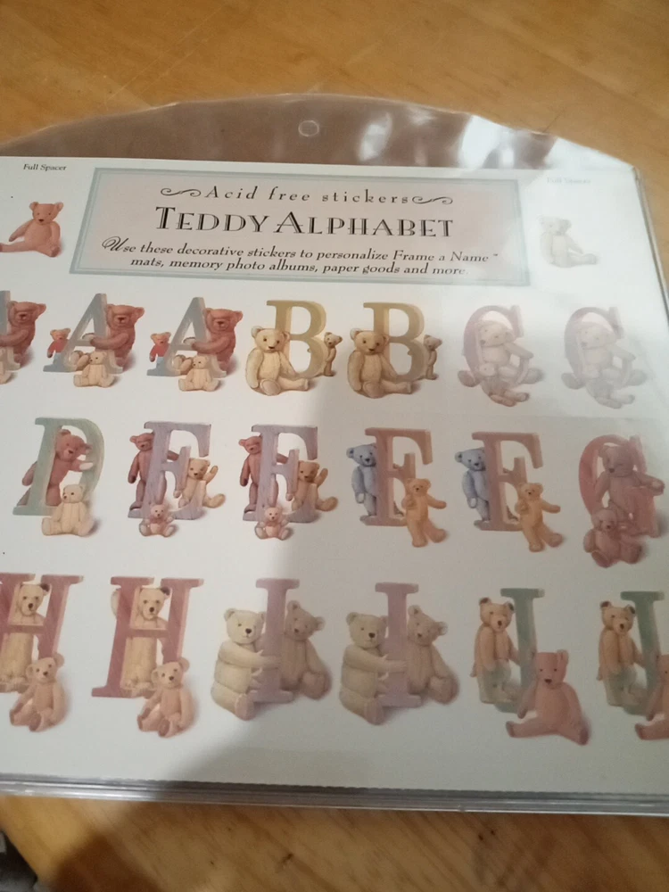 Add a touch of cuteness to your scrapbooking projects with these Acid Free Stickers featuring the Teddy Alphabet. Perfect for personalizing photo albums, paper goods, and other crafts, these stickers are sure to delight. The multi-color design and handmade-inspired theme make them a unique addition to your collection. Whether you're a seasoned crafter or just starting out, these stickers are a must-have for any Teddy Bear lover.